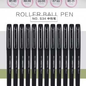 得力/deli S34 书写用笔类用具 大容量中性笔1mm加粗签字笔签名笔磨砂笔杆粗芯办公商务水笔