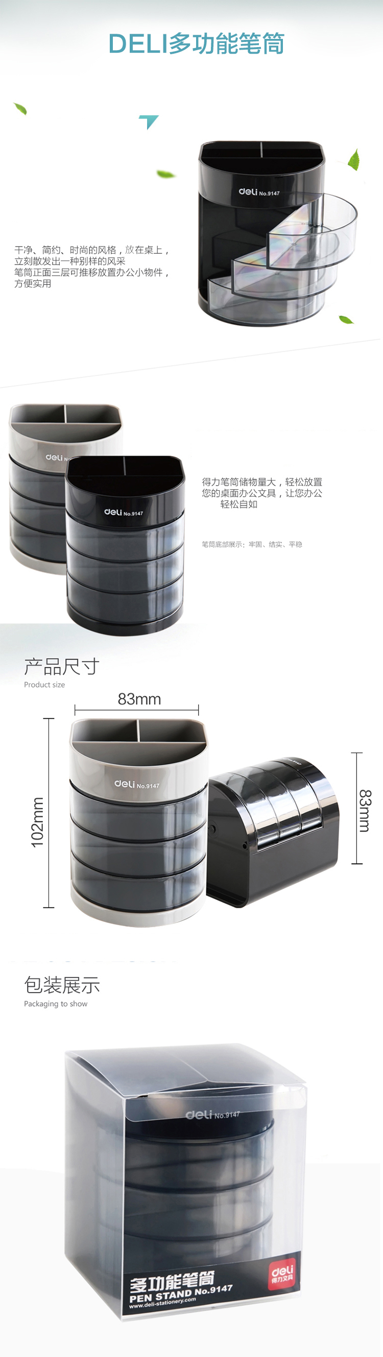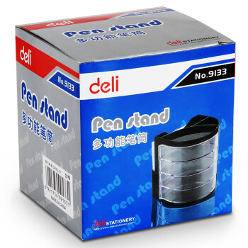 得力 deli DL9133笔筒 三层多功能办公笔筒 商务办公桌面收纳盒 颜色随机 办公用品 黑色