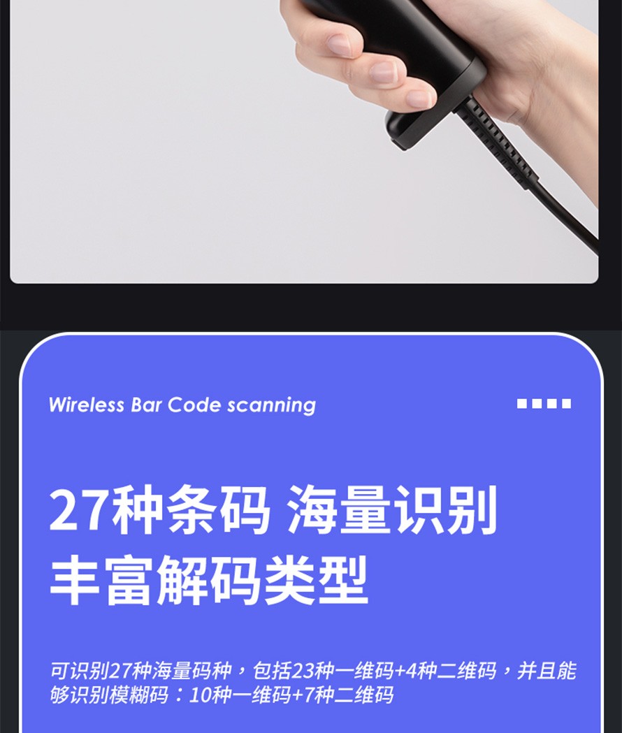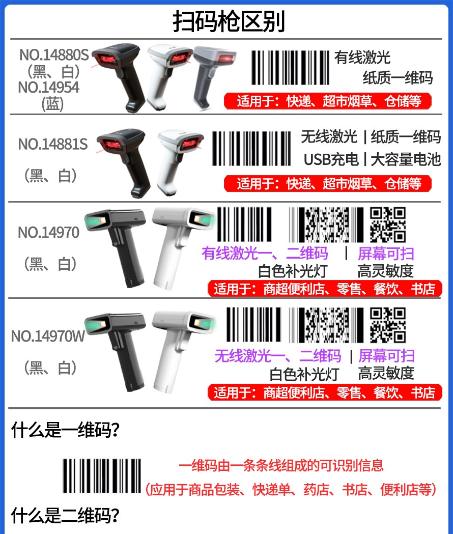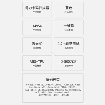 得力(deli)dl14954 条码扫描器 有线/无线扫码抢 零售仓储超市商店商品条码扫码器 有线一维码(蓝)