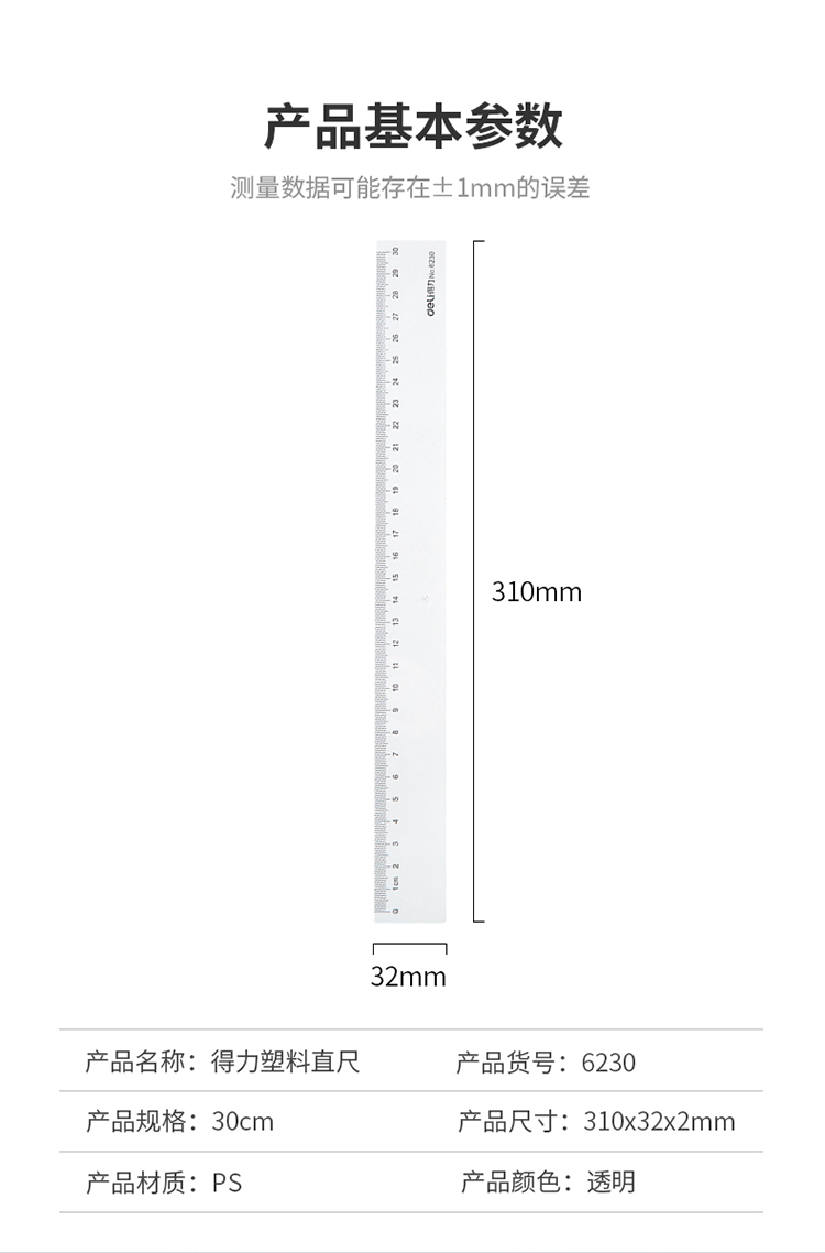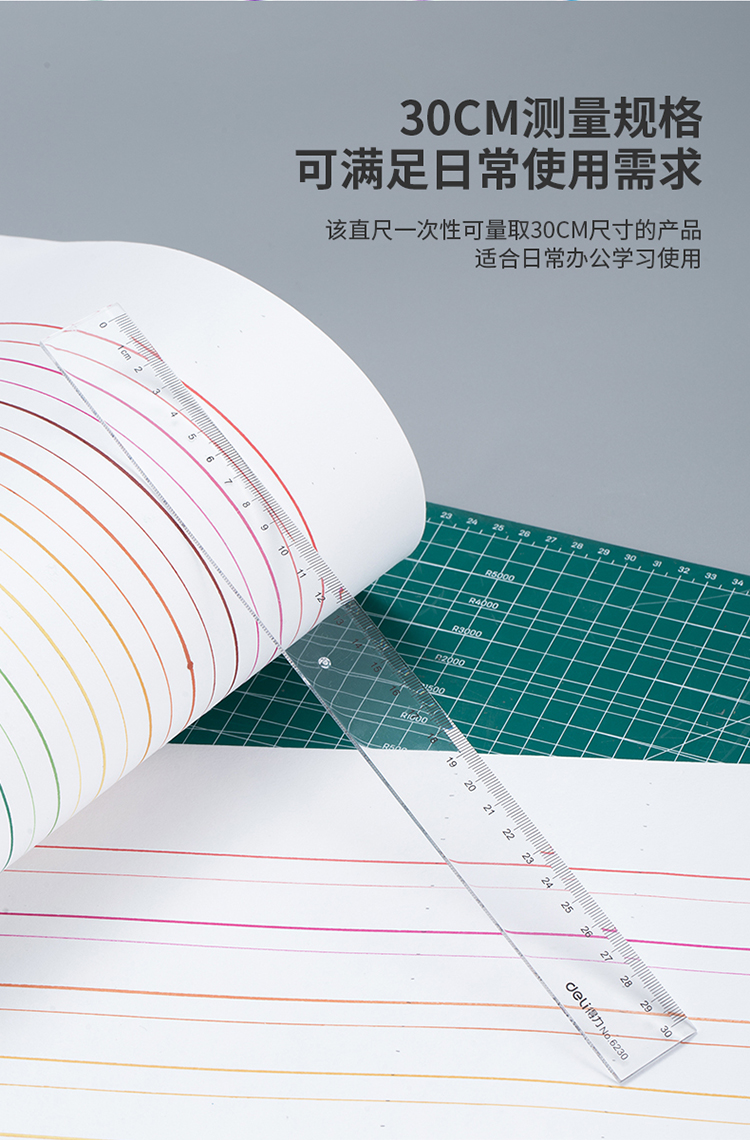 得力 deli DL 6230 30cm 直尺 测量绘图尺子 办公用品
