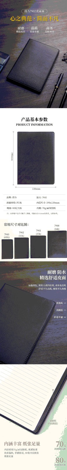 得力/deli DL7902 薄本册 皮面笔记本(黑)-80张-32K(本)