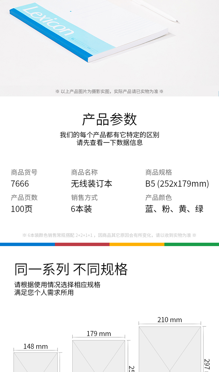 得力 deli dl7666 6本 薄本册 B5/100张无线装订软抄本 记事本/ 工作笔记本子/ 日记本 文具办公用品