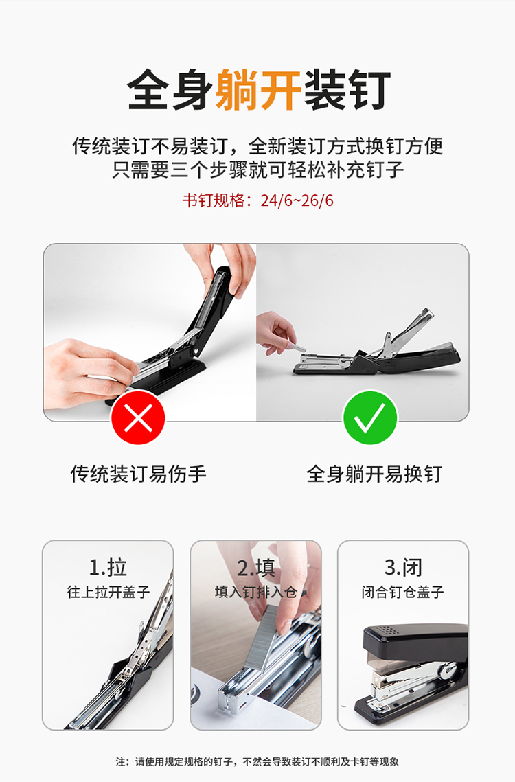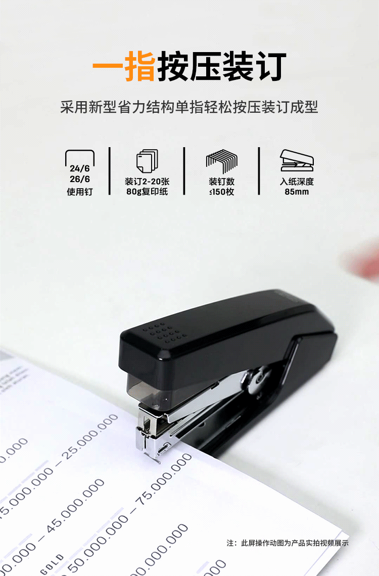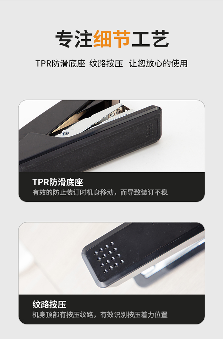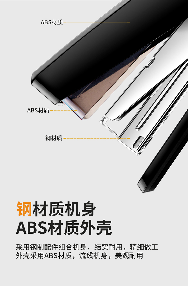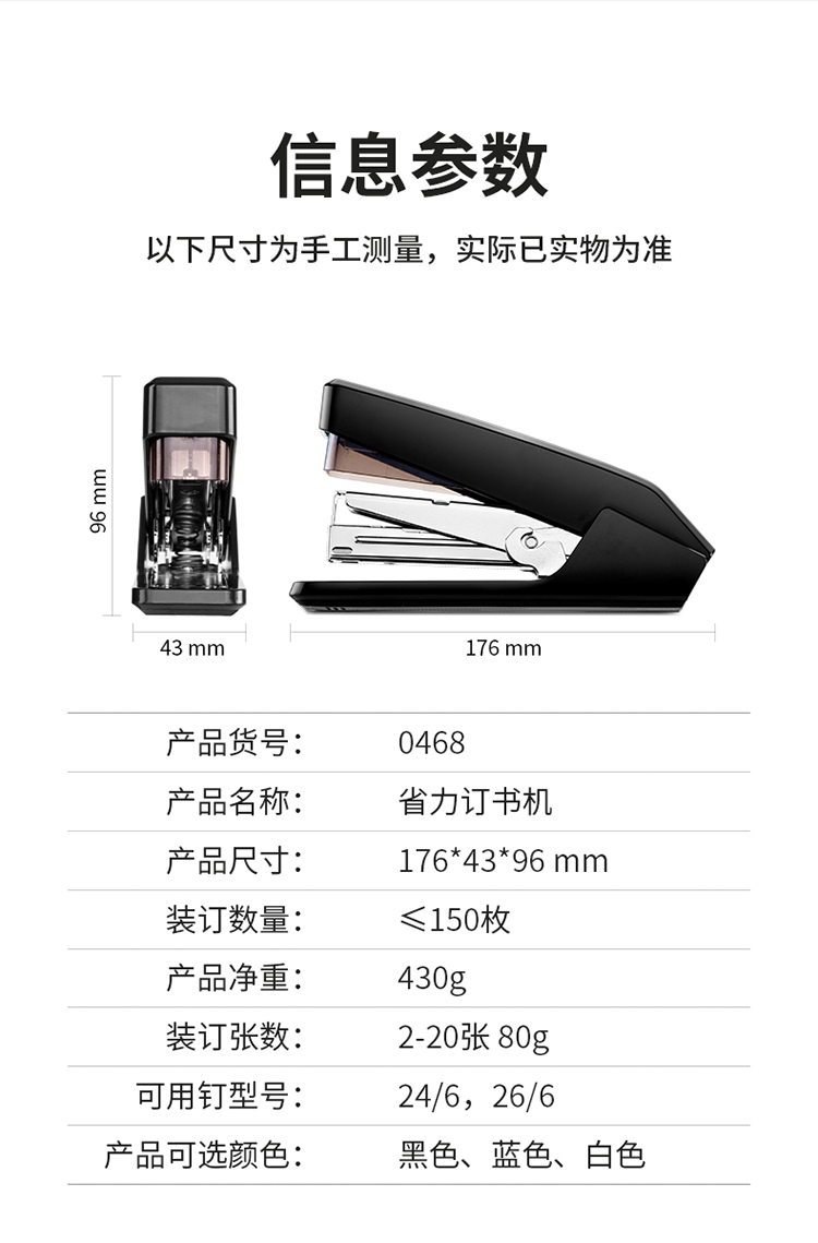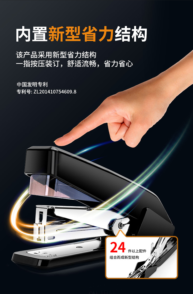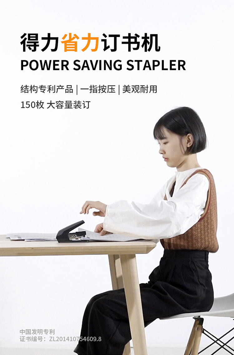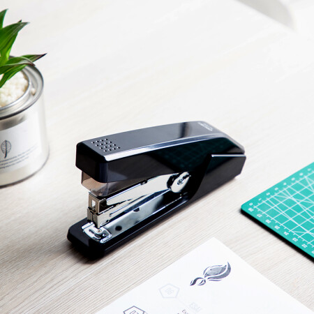 得力 deli DL0468省力结构专利订书机 装订及打孔类 适配12#订书钉 可装150枚钉 办公用品 黑色