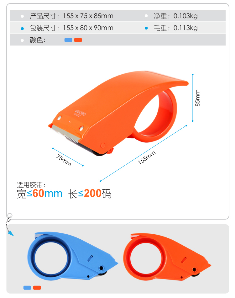 得力 deli dl802 胶带座/封箱器 封箱器打包器胶带底座 适用胶带宽度60mm内胶带切割机