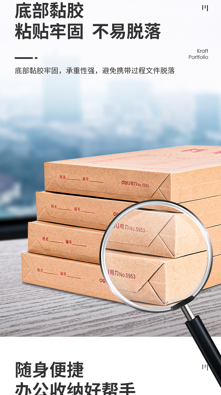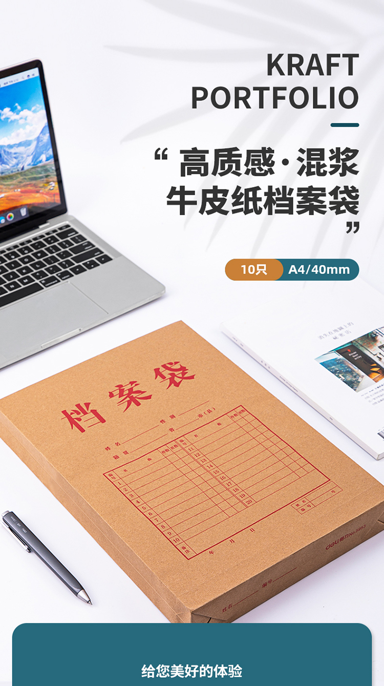 得力 DL5953-10只/包 A4混浆175g牛皮纸档案袋 文件袋 侧宽4cm