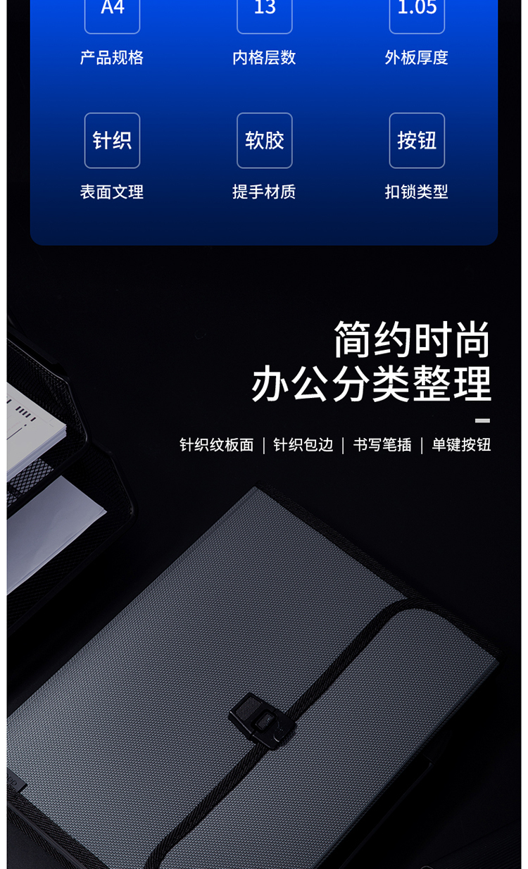 得力 deli DL5555 收纳包 A4/13格风琴包 针织纹面资料包