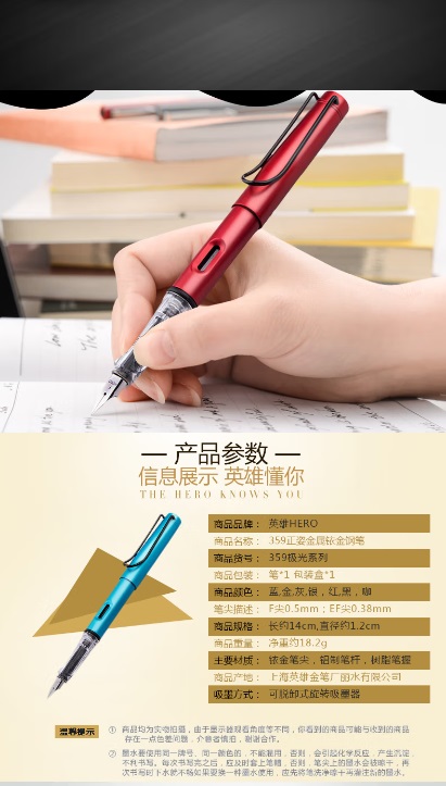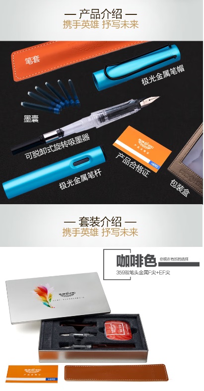 英雄钢笔 HERO359 金属银 书写用笔类用具