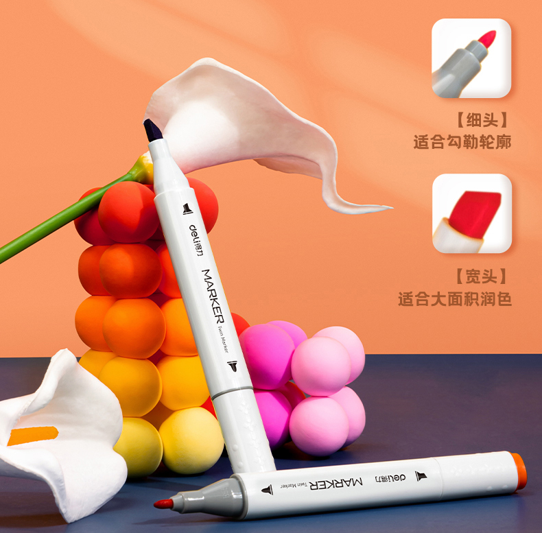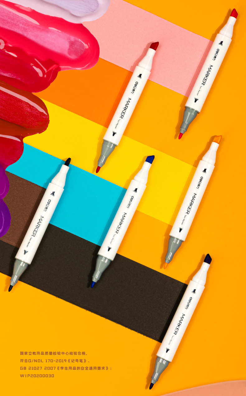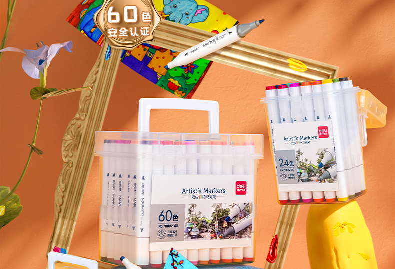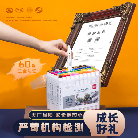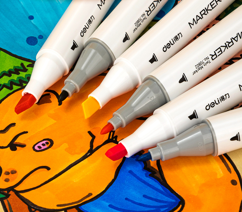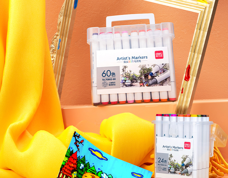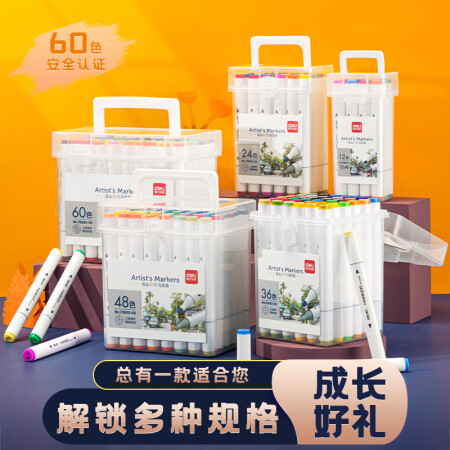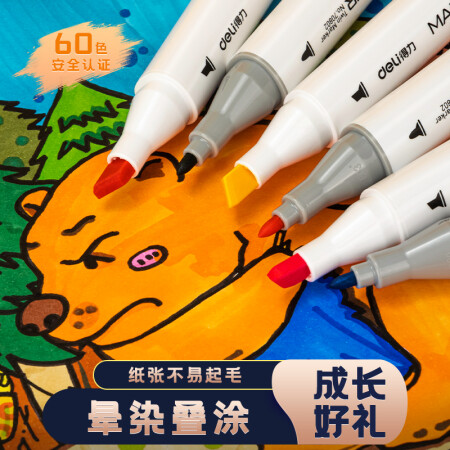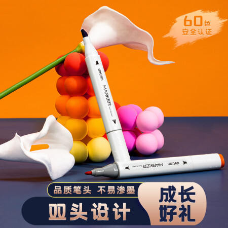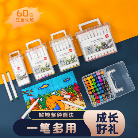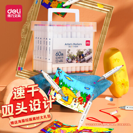 得力 deli DL70802-60双头马克笔套装60色 书法绘画用具