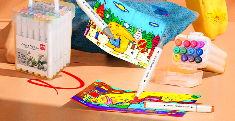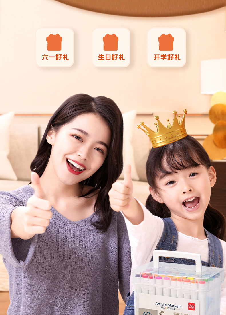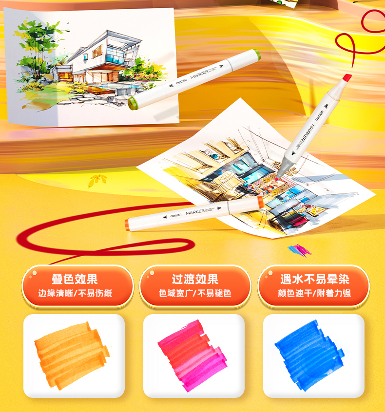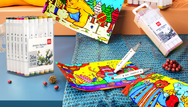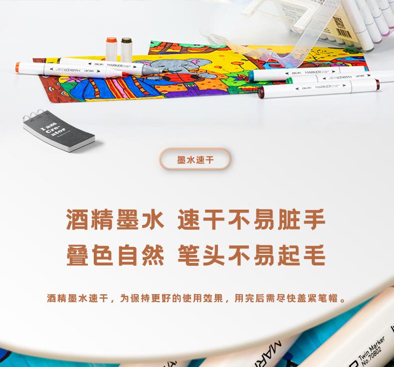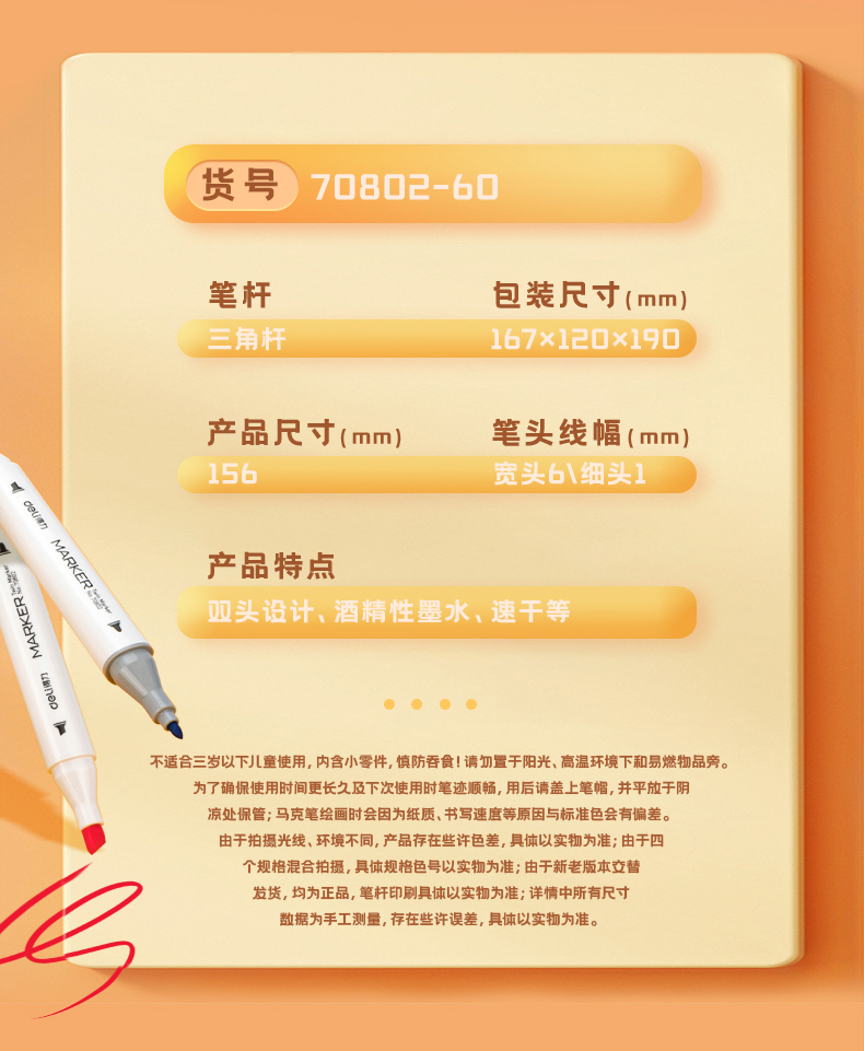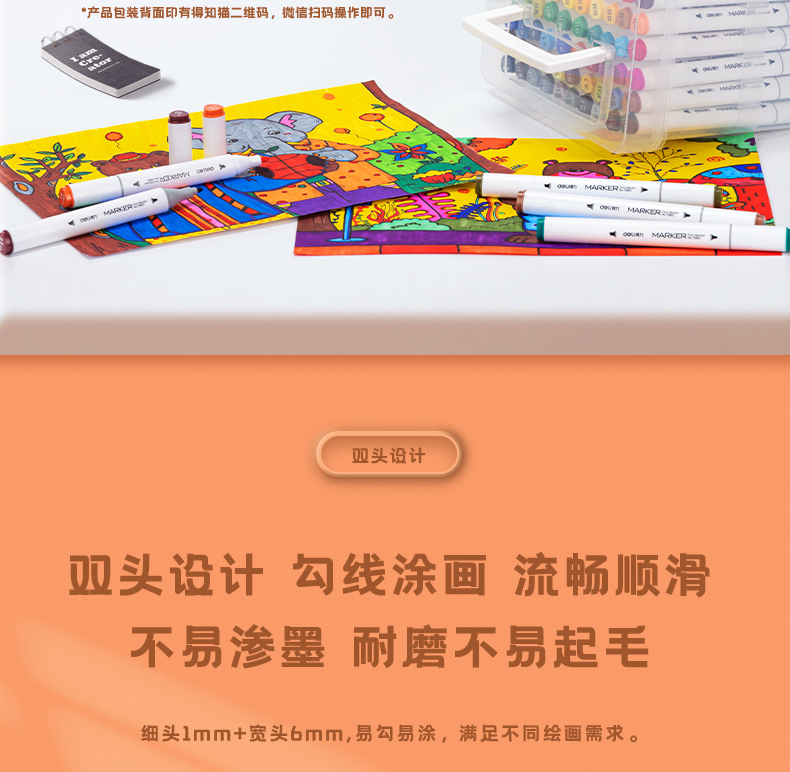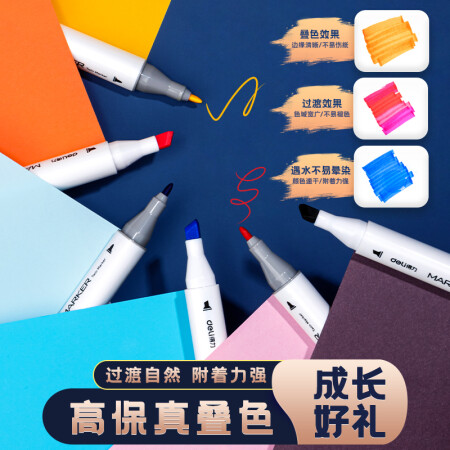 得力 deli DL70802-60双头马克笔套装60色 书法绘画用具