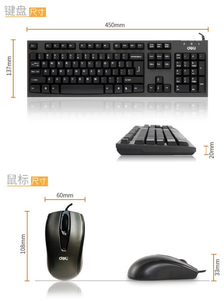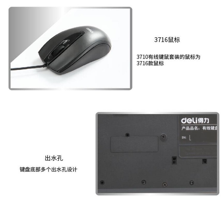 得力(deli)DL3710有线键鼠套装 高键帽设计 USB台式笔记本电脑 办公游戏键盘鼠标