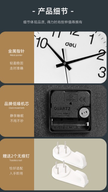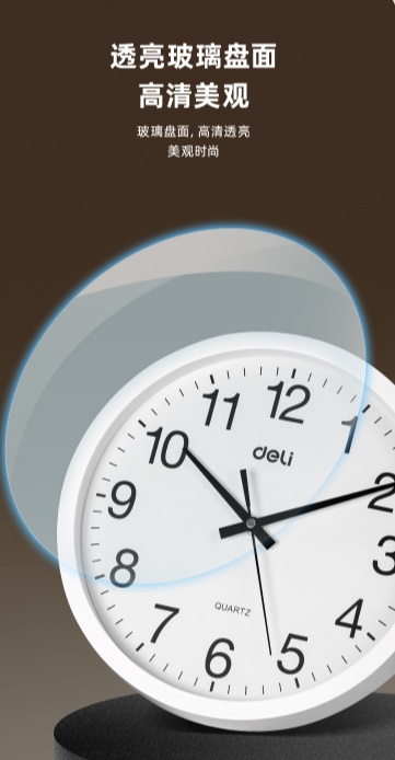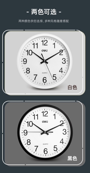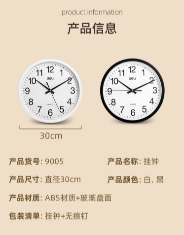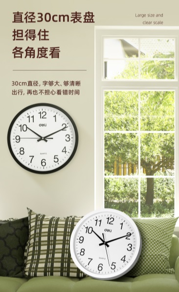 得力 deli DL005挂钟钟表 客厅挂式低噪音钟表 9005 30cm简约时尚挂钟 黑色座钟