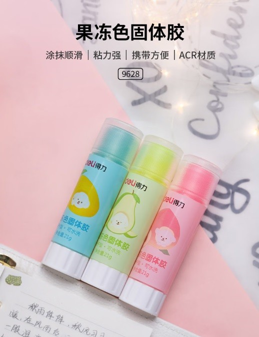 得力/deli DL9627 胶棒/固体胶/胶水 糖果配色高粘度固体胶ACR材质缓干型