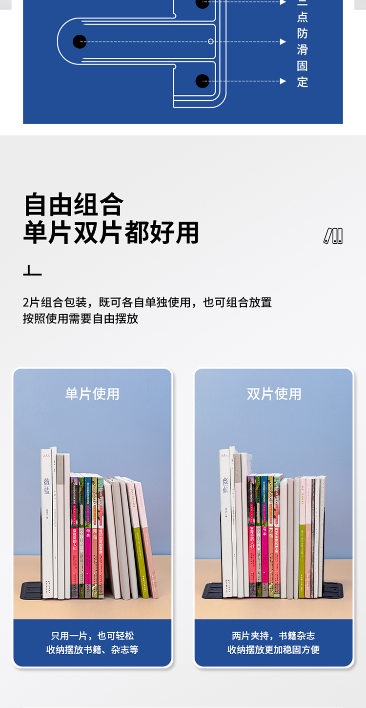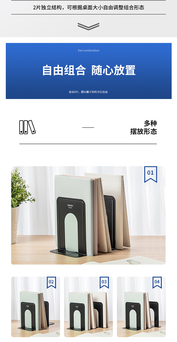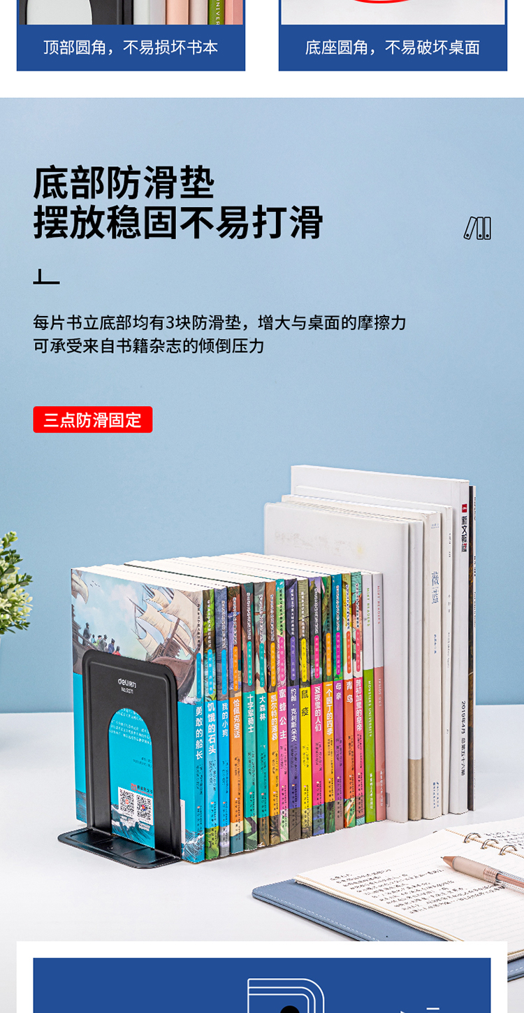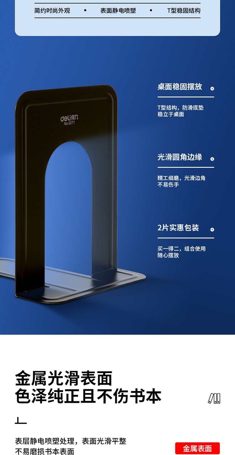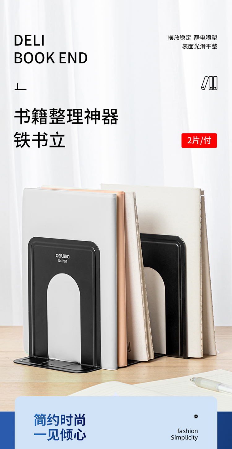 得力 deli dl9271 6英寸 高15cm 金属铁书立架 办公书靠2片/付 办公用品 黑色