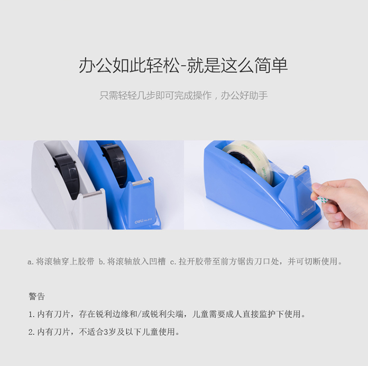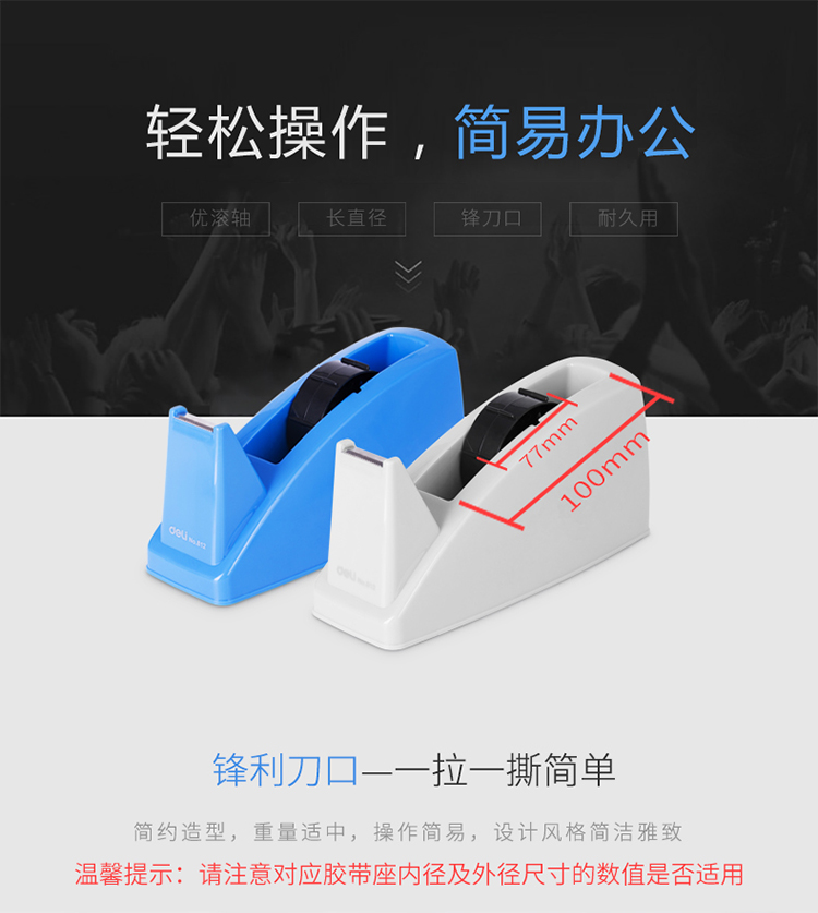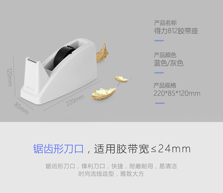得力 deli DL812 胶带座/封箱器 大号胶带座切割器封箱器 胶带宽度 ≤24mm 蓝灰随机