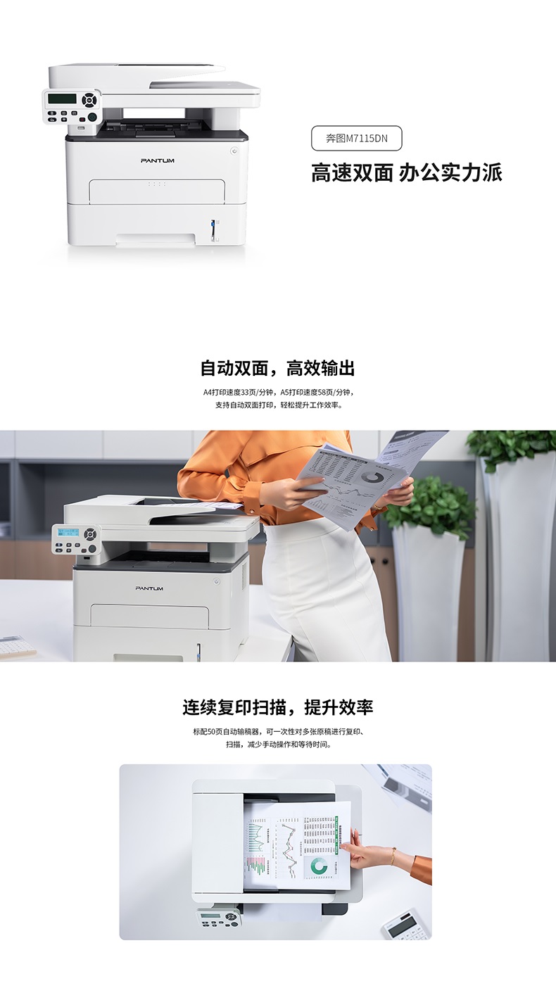 奔图/PANTUM M7115DN多功能一体机黑白激光三合一 自动双面 打印复印扫描 办公商用打印机