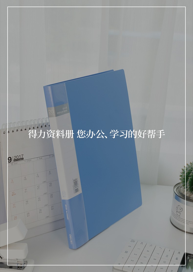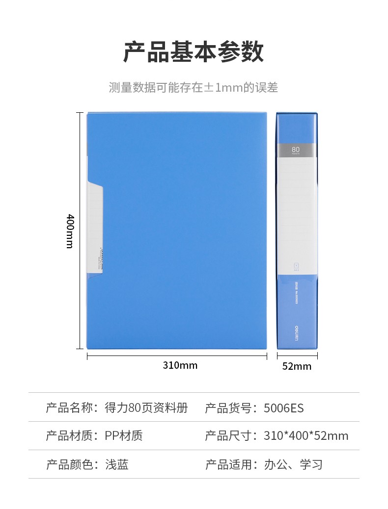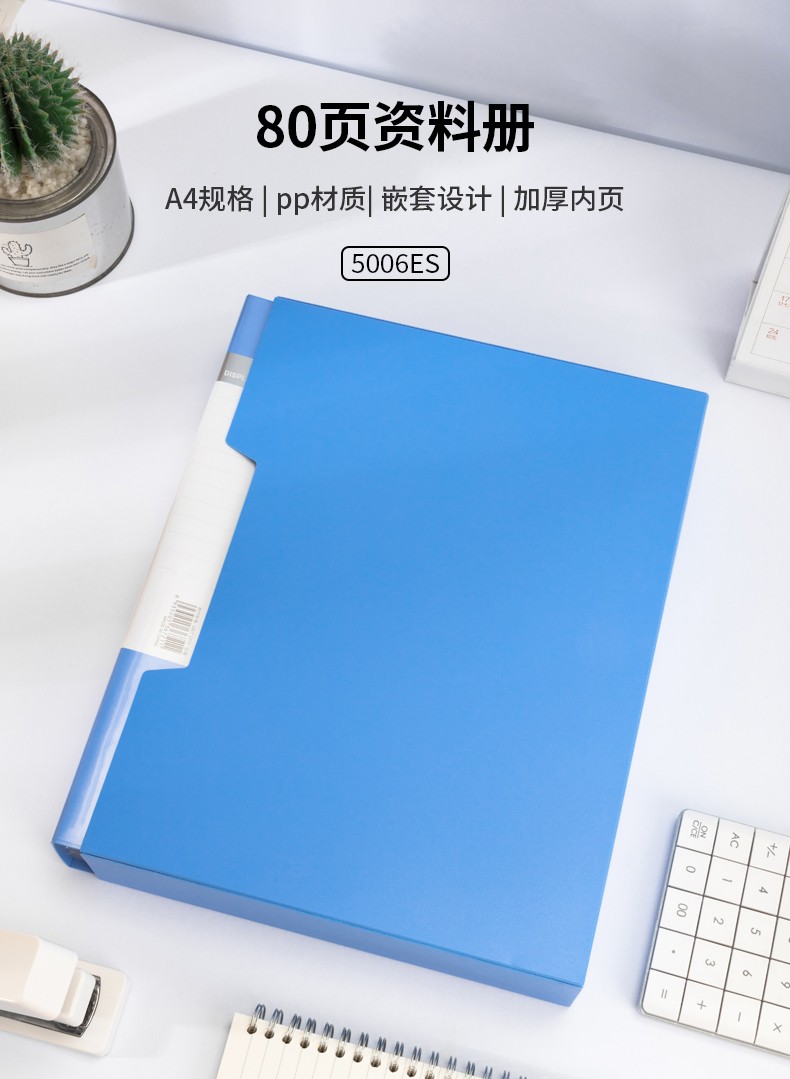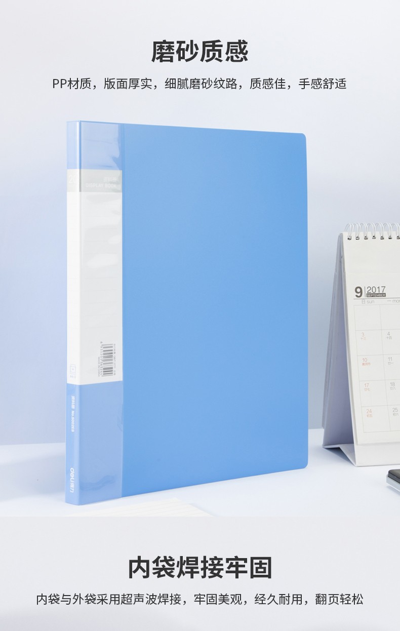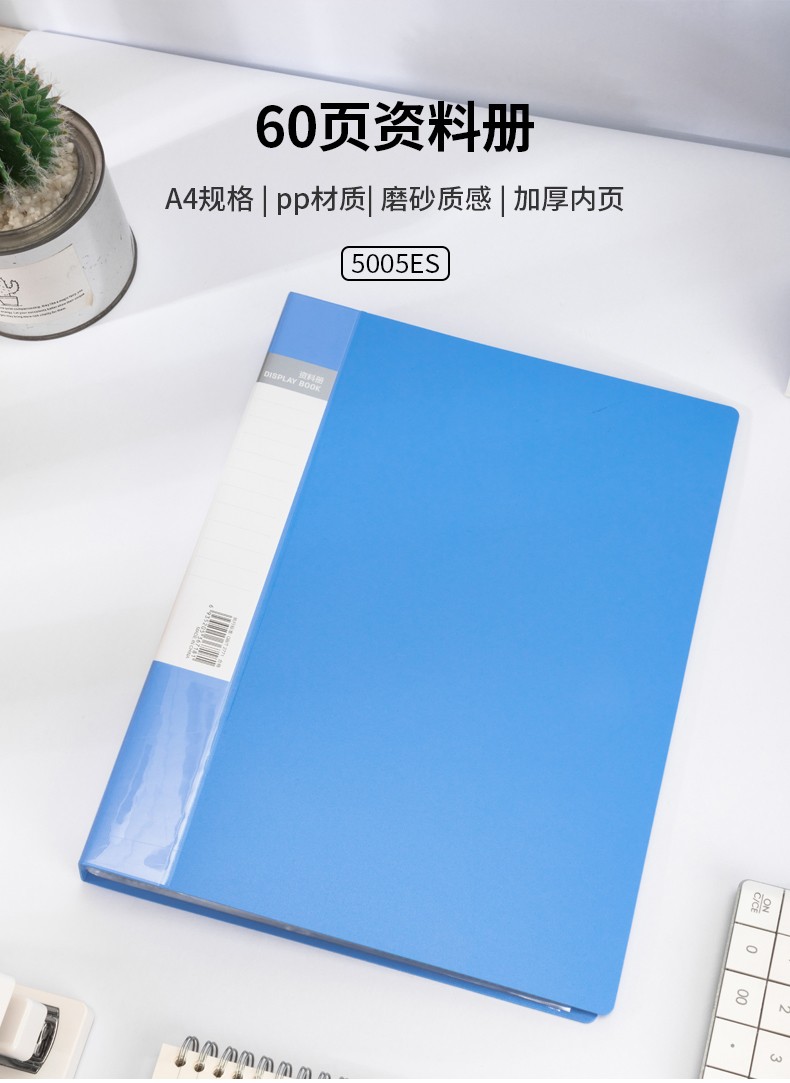 得力 deli A4资料册透明活页试卷夹彩色文件夹插页袋20/30/40/60/80/100页档案夹 5006ES 80页 5只装