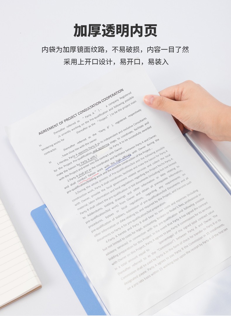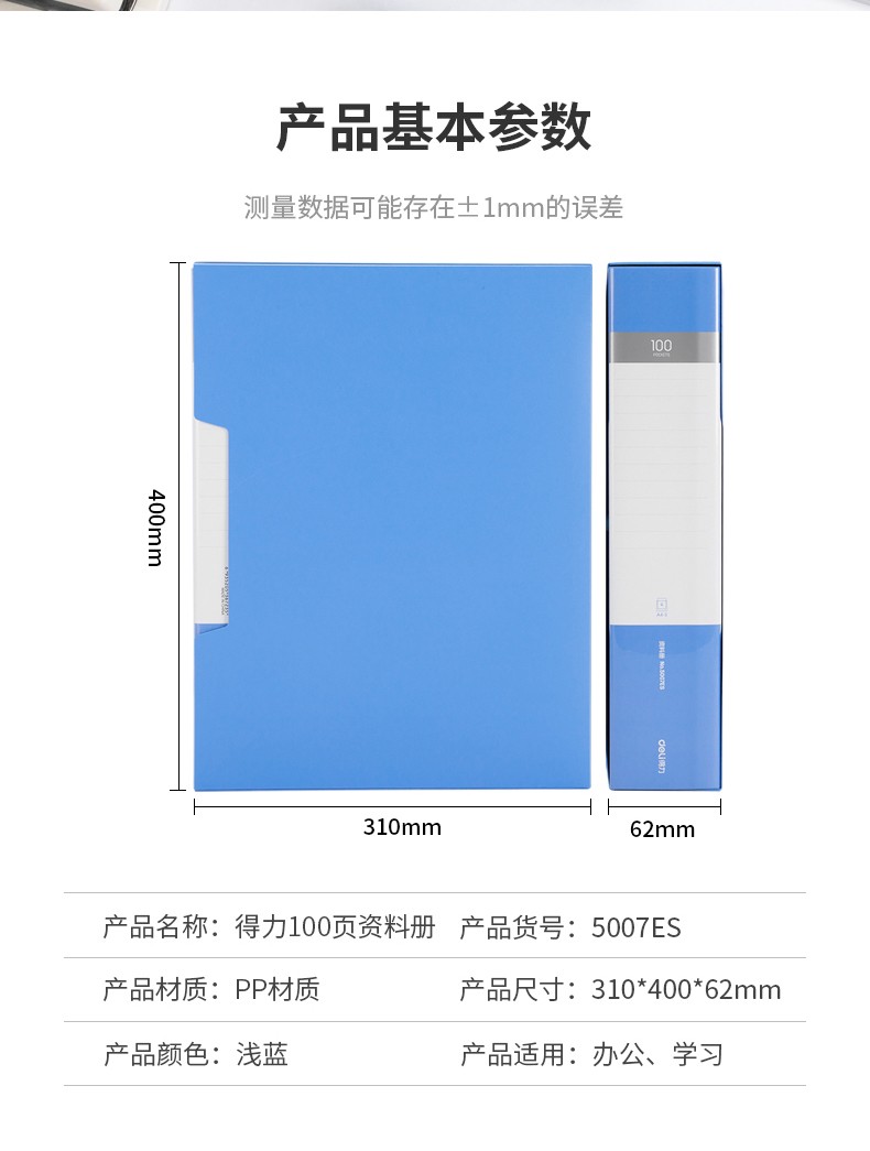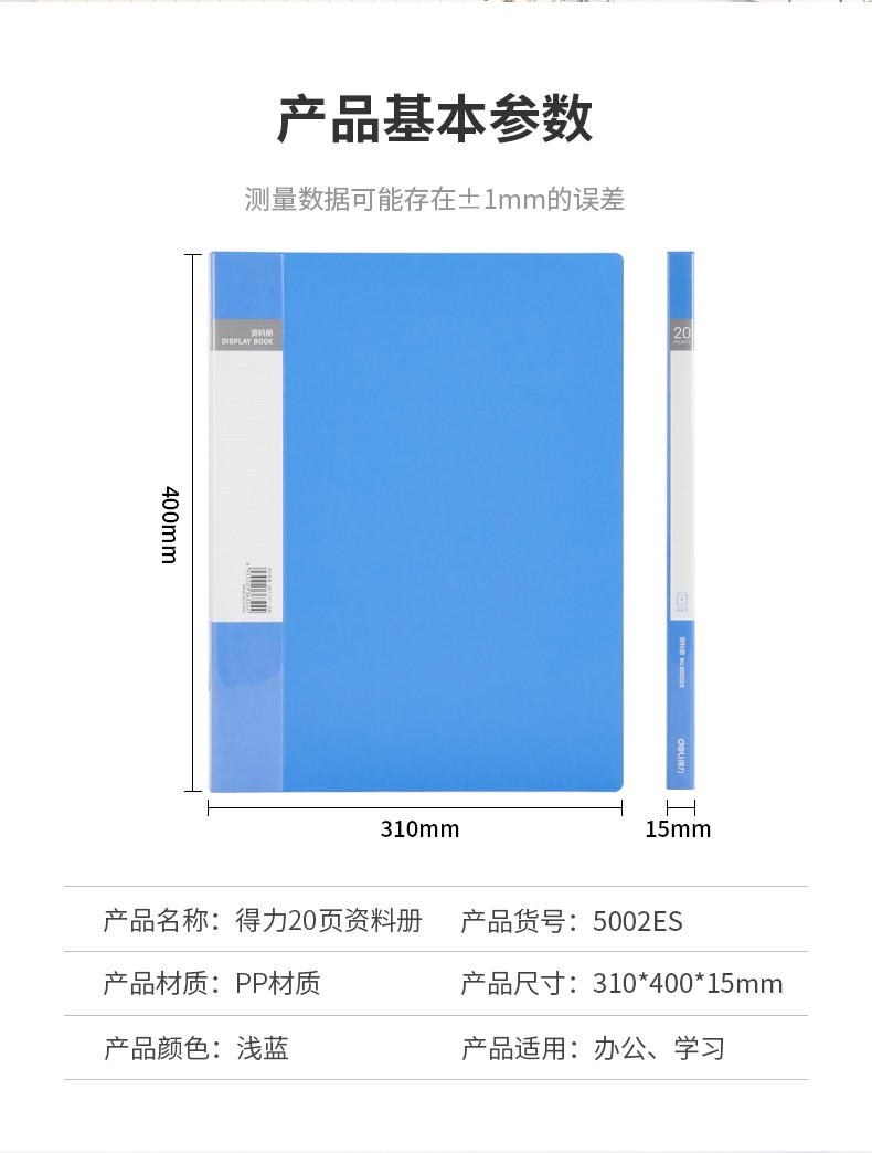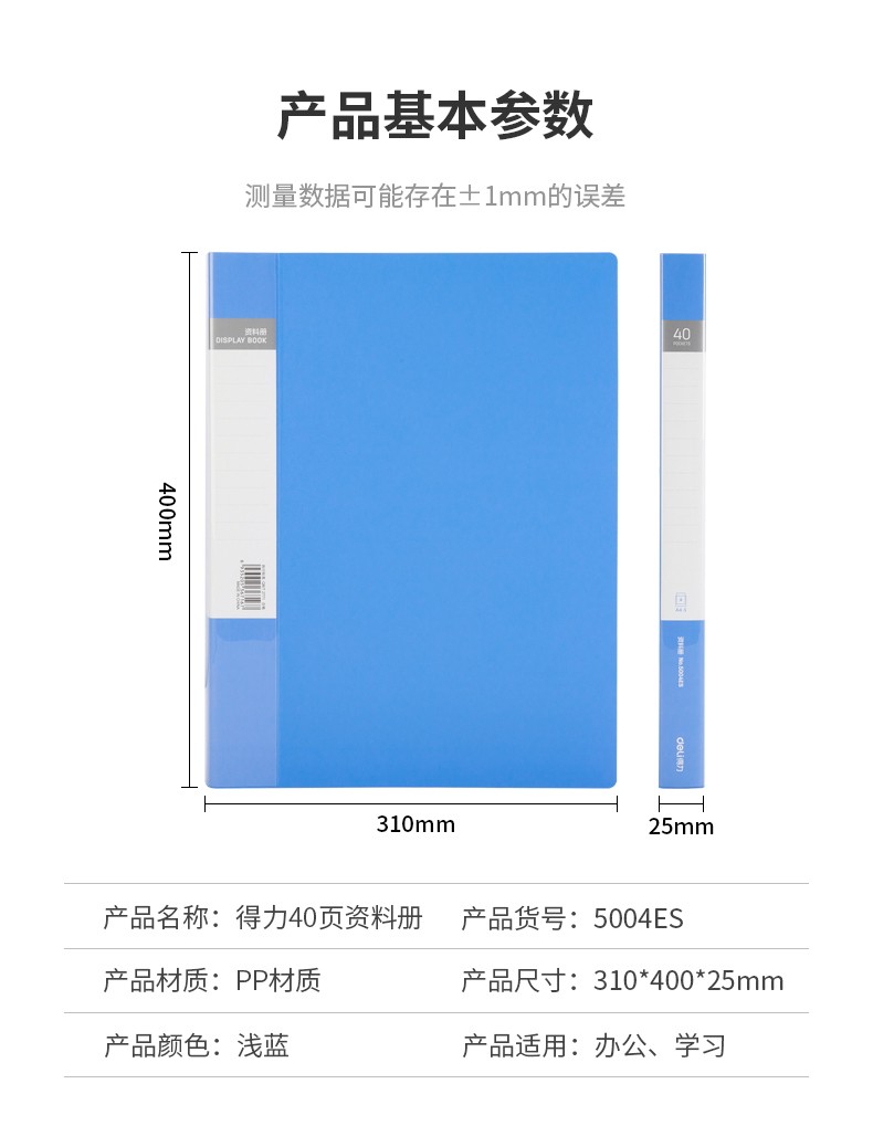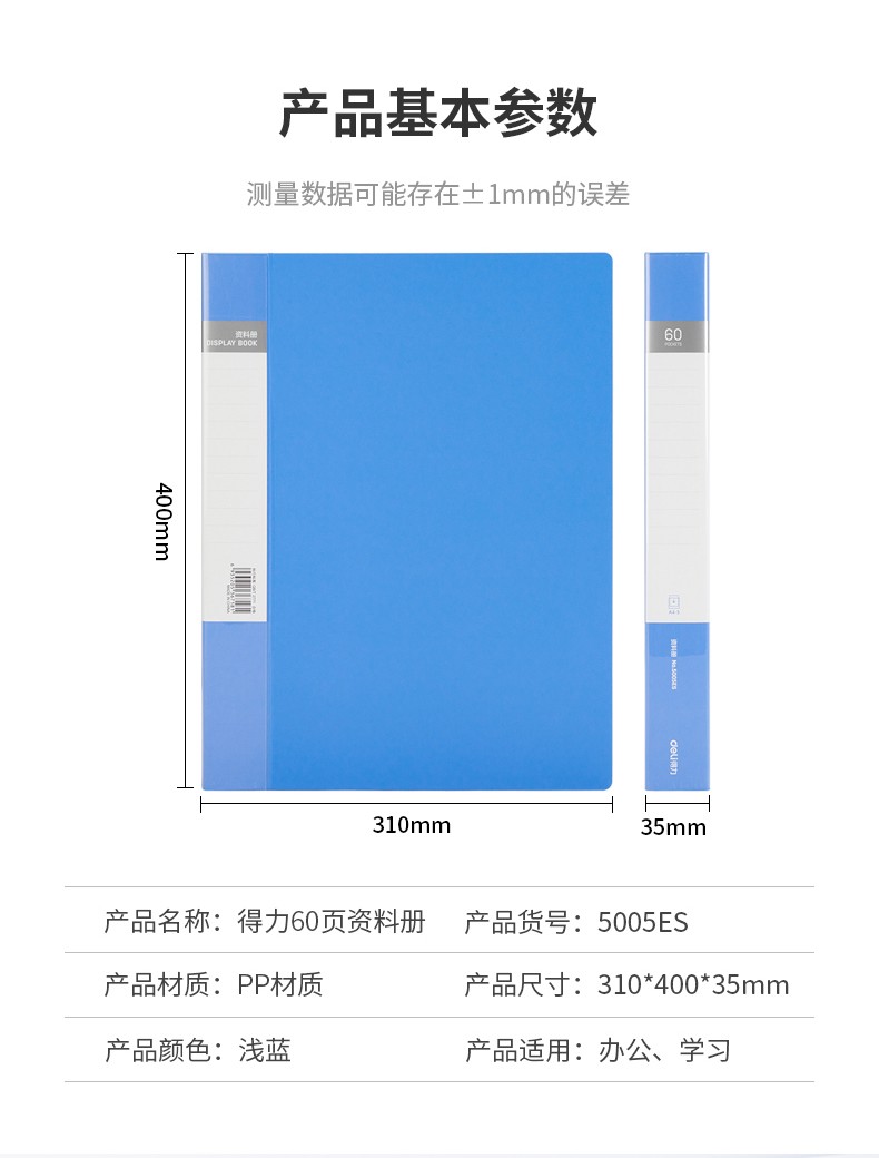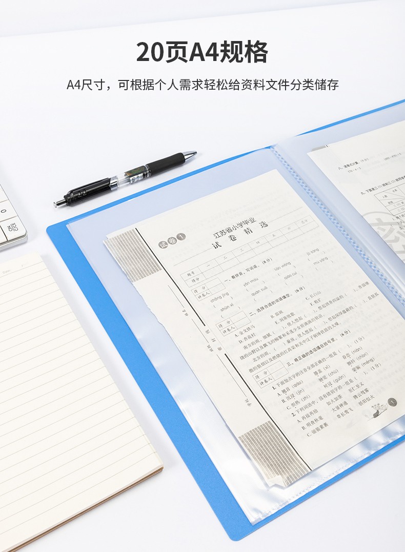 得力 deli A4资料册透明活页试卷夹彩色文件夹插页袋20/30/40/60/80/100页档案夹 5006ES 80页 5只装