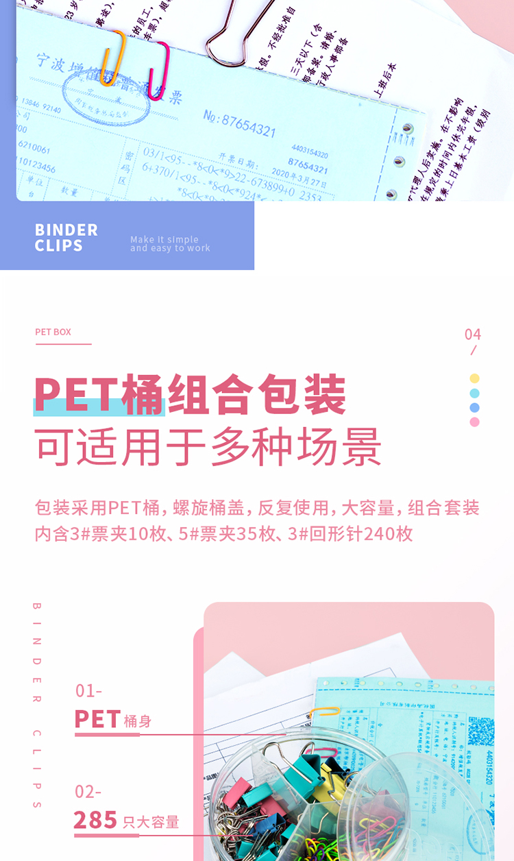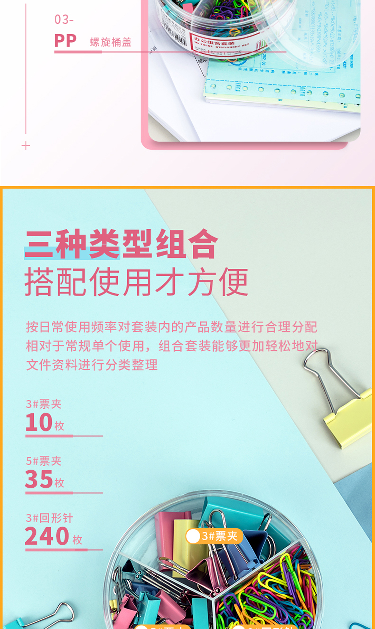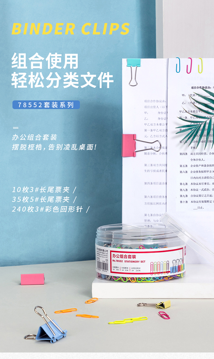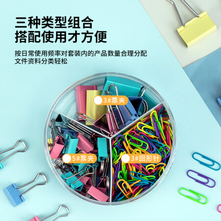 得力 deli DL78552办公票夹组合套装装订及打孔类(3#票夹10枚+5#票夹35枚+3#回形针240枚)