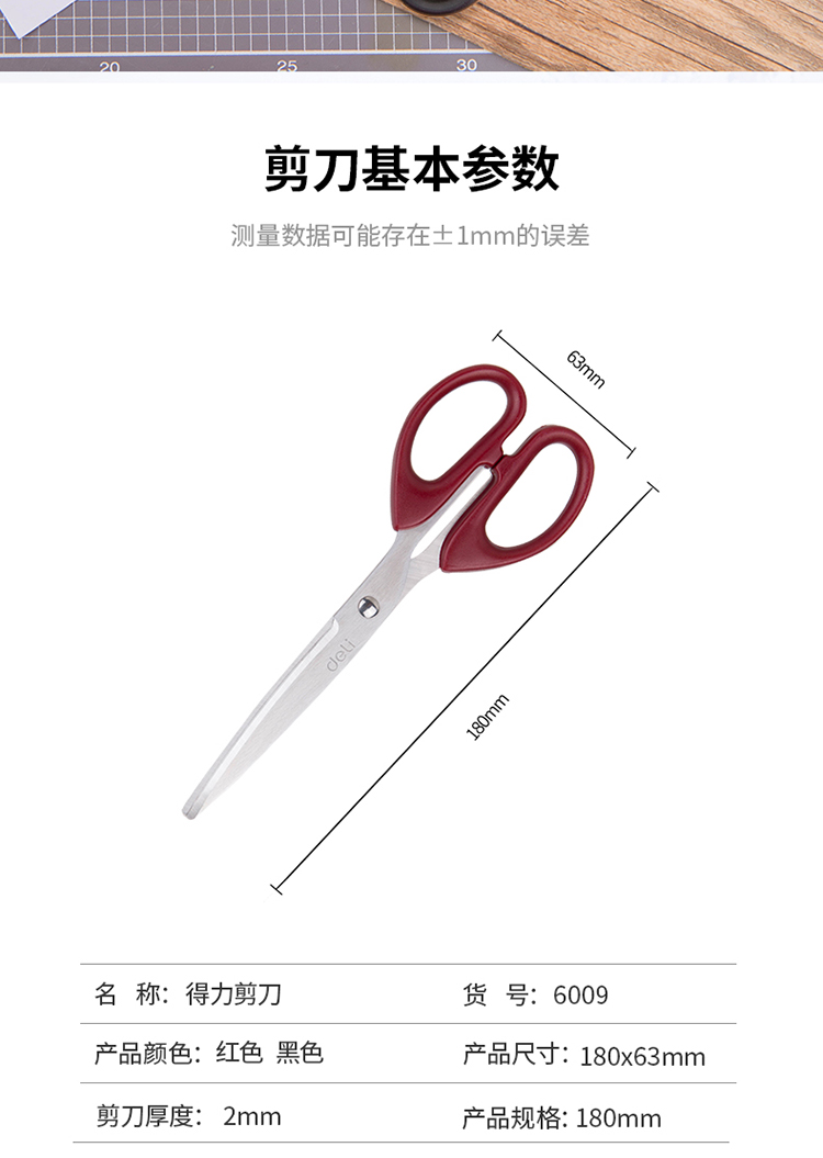 得力 deli DL6009 剪刀 180mm办公家用生活剪刀 1把 办公用品 颜色随机
