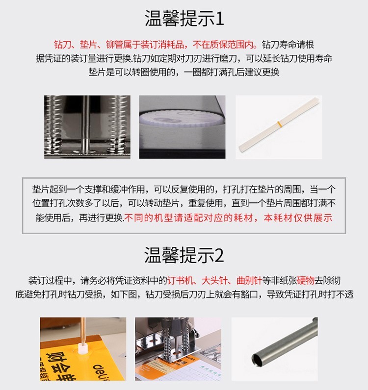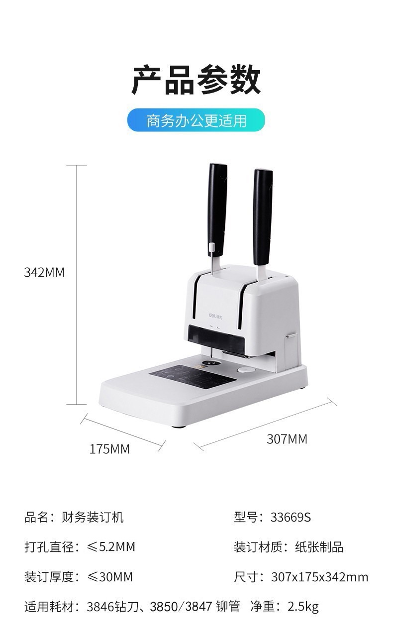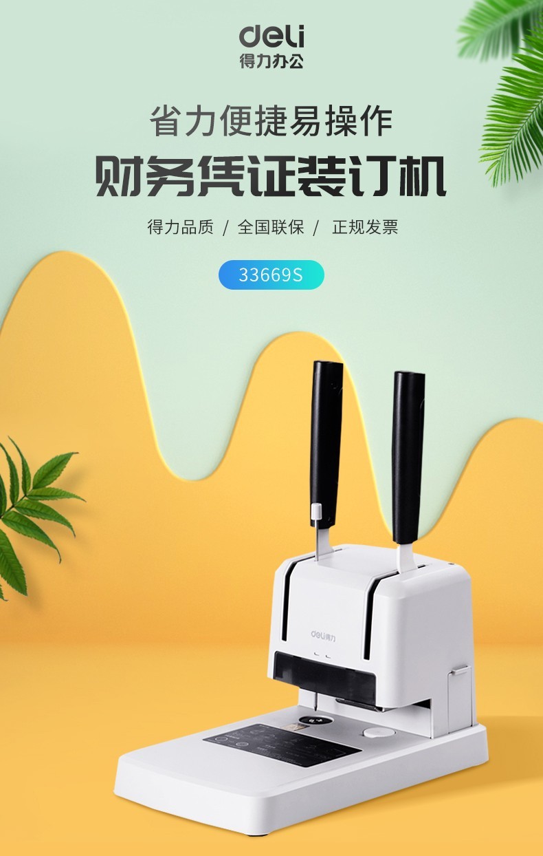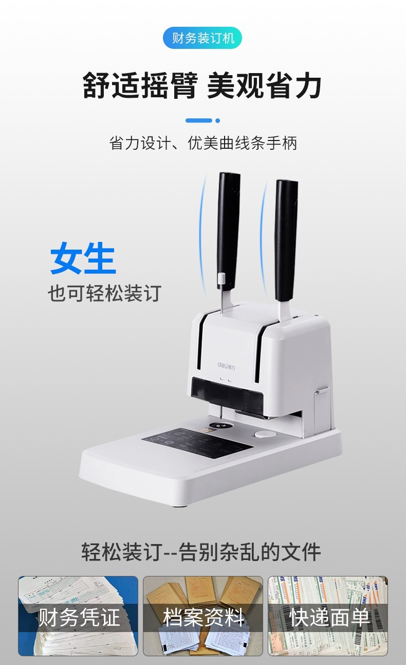 得力财务凭证装订机 dl33669S 装订机 会计专用手动打孔机热熔铆管装订机 装订厚度30mm 孔径5mm