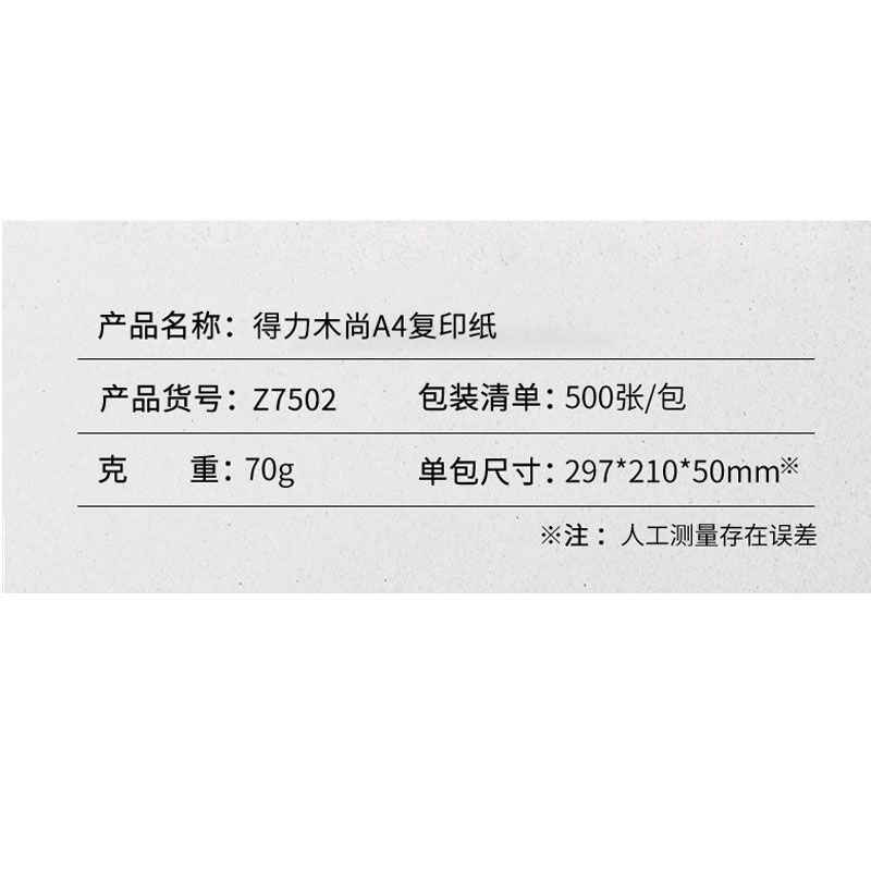 得力 Z7502 木尚 复印纸 A4-70g-5包 白色 包 1箱