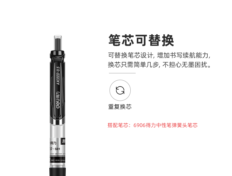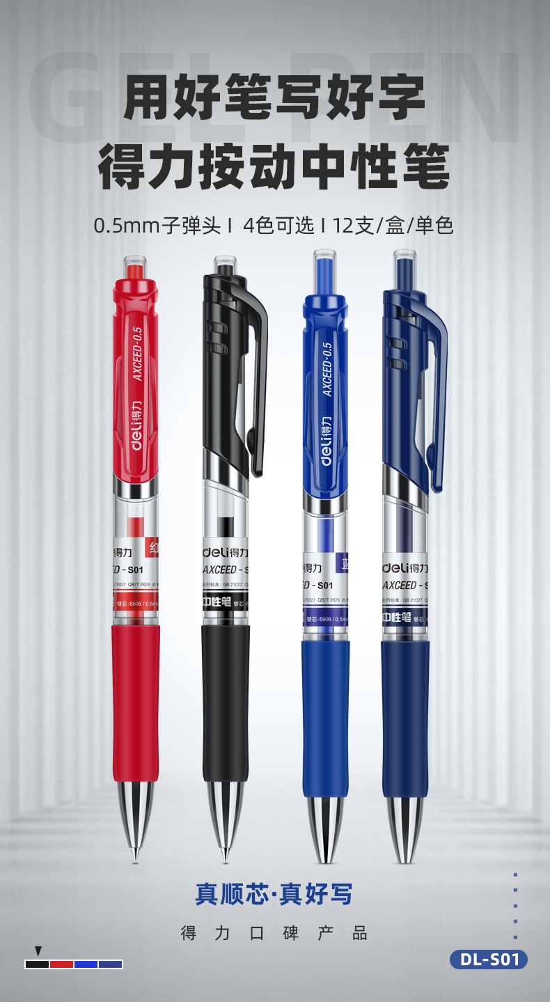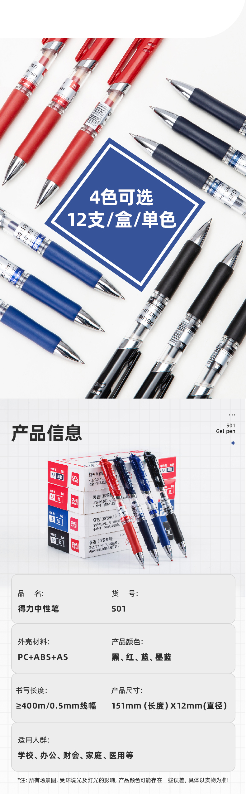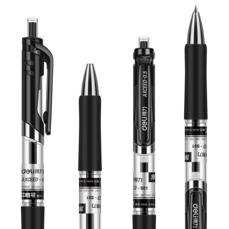 得力 deli S01中性笔签字笔 0.5mm子弹头 书写用笔类用具 黑色 12支/盒