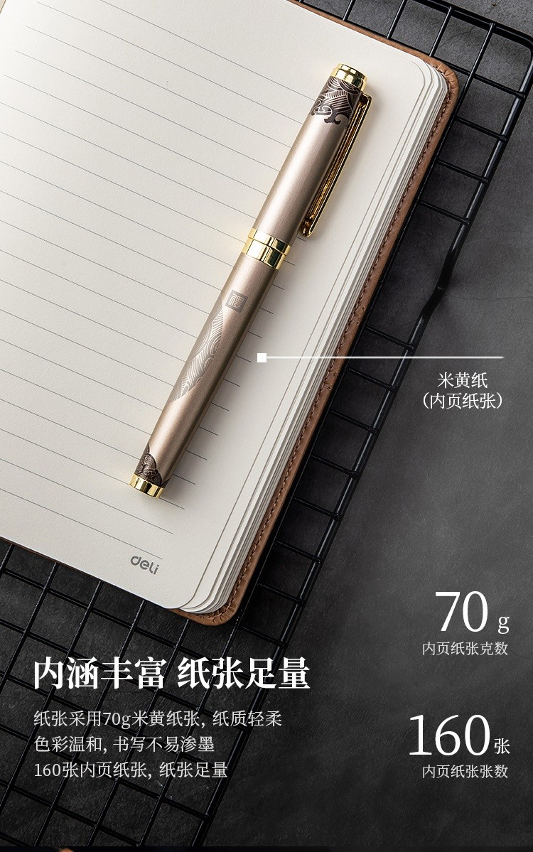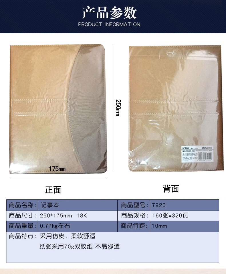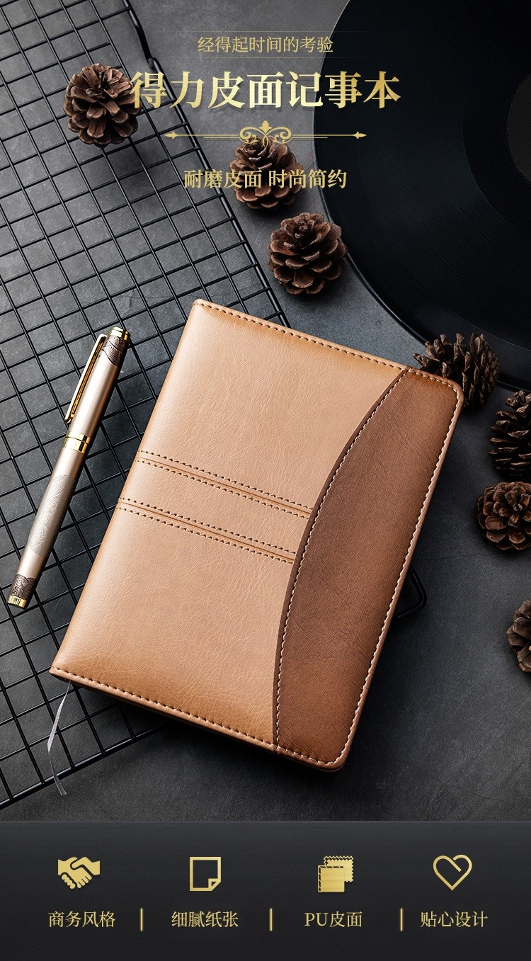 得力 DL7920 薄本册 160页仿皮记事本 日记本 18K会议本 棕色