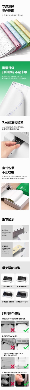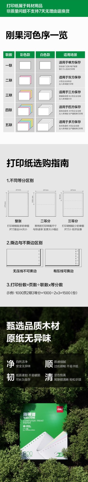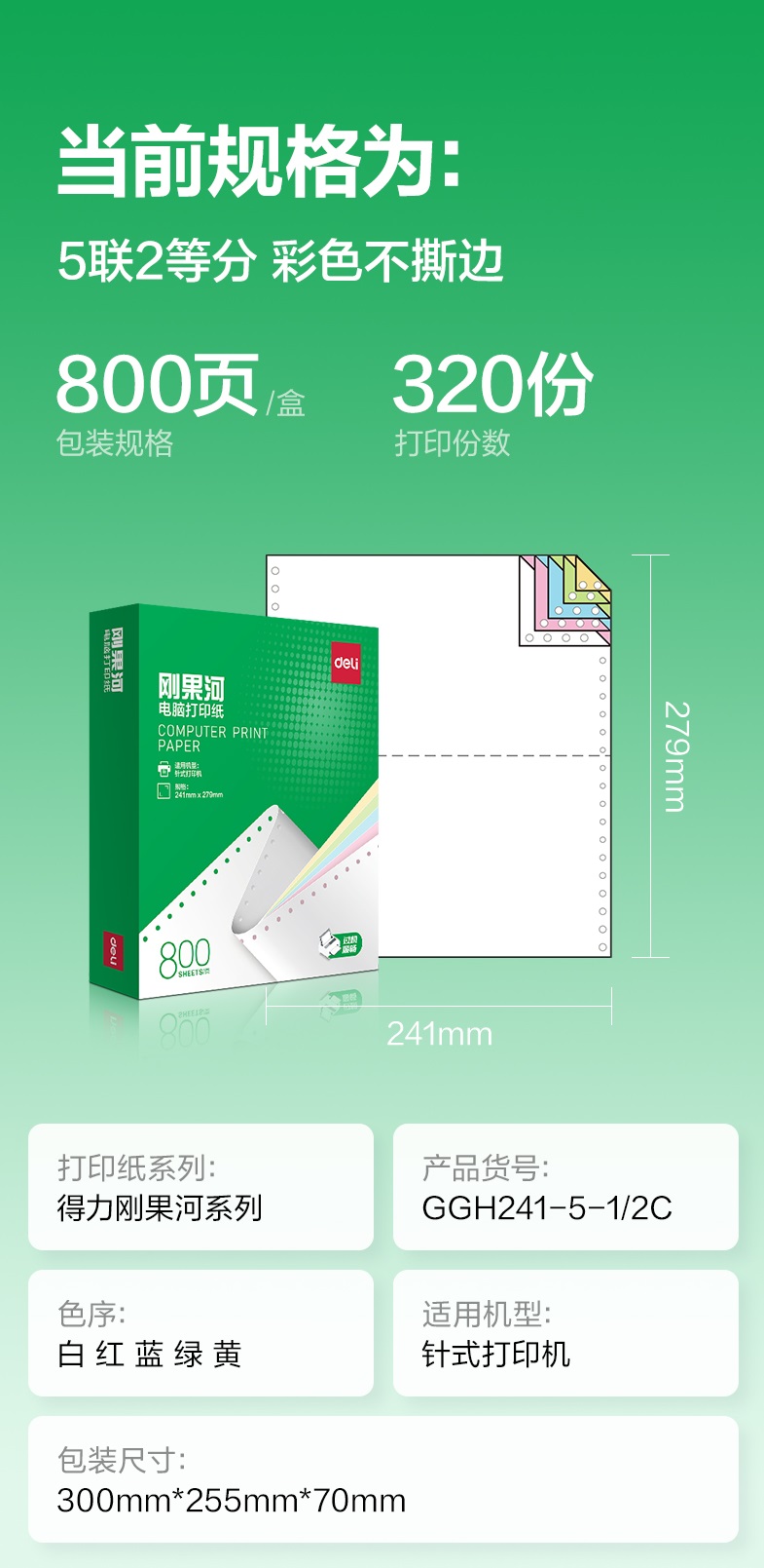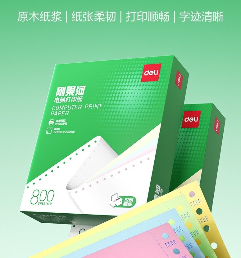 得力/deli GGH241-5 复印纸 刚果河GGH241-5电脑打印纸(1/2C彩色不撕边)(800页/盒)