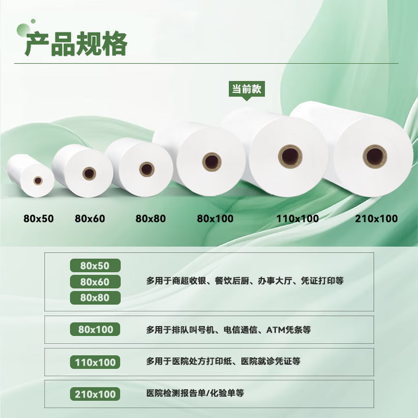 新绿天章 T110-100 标签打印纸/条码纸 新绿天章三防热敏打印纸 110*100mm(100米/卷)8卷 医用处方药房清单打印纸 就诊凭证小票纸 可穿轴