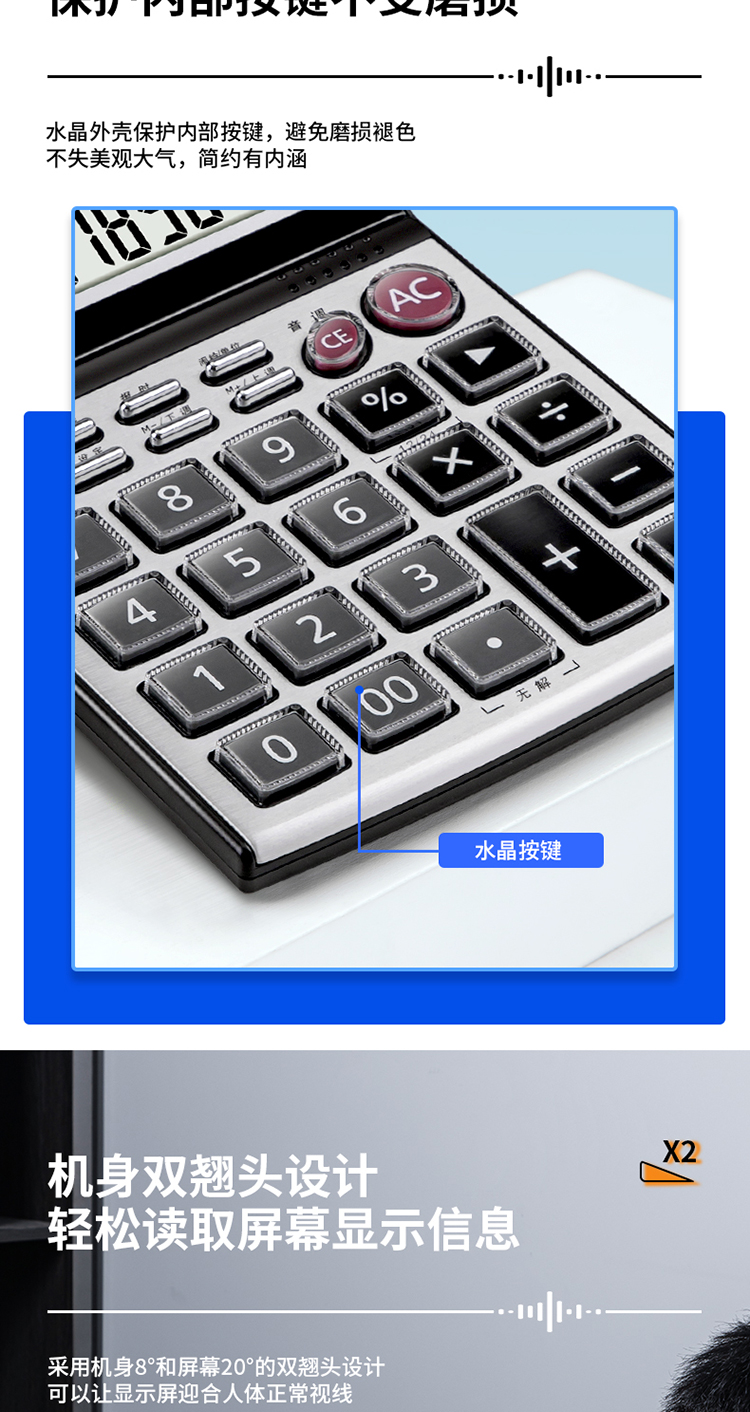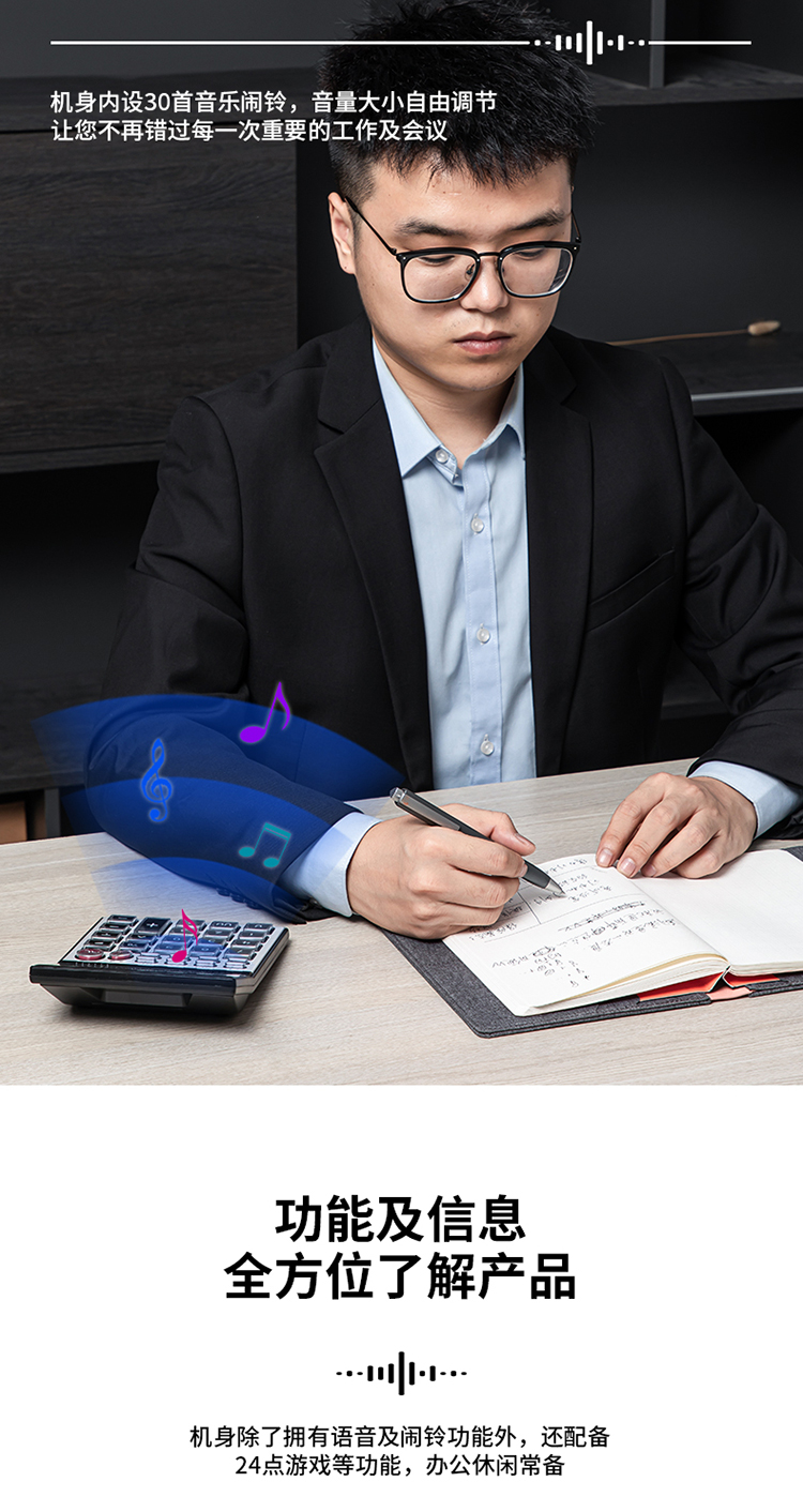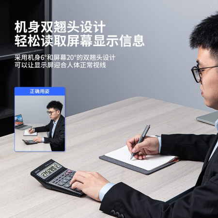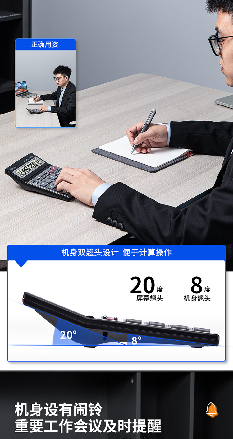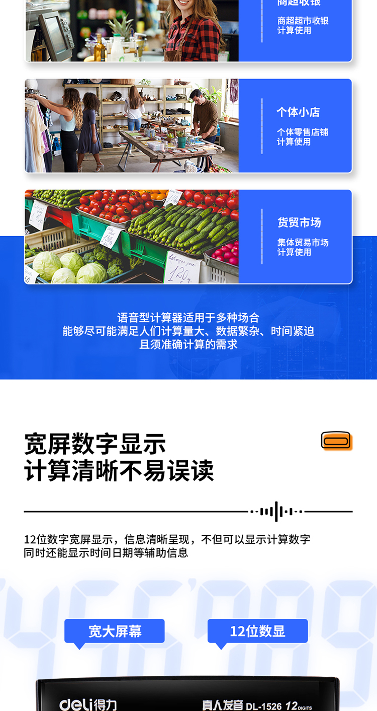 得力 deli DL1526 电子计算器 水晶按键12位语音计算器 闹铃功能语音计算机 格调灰