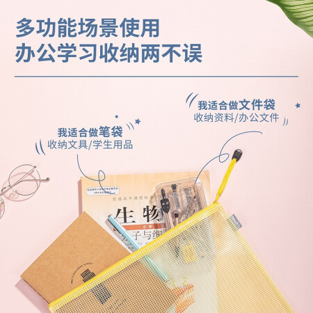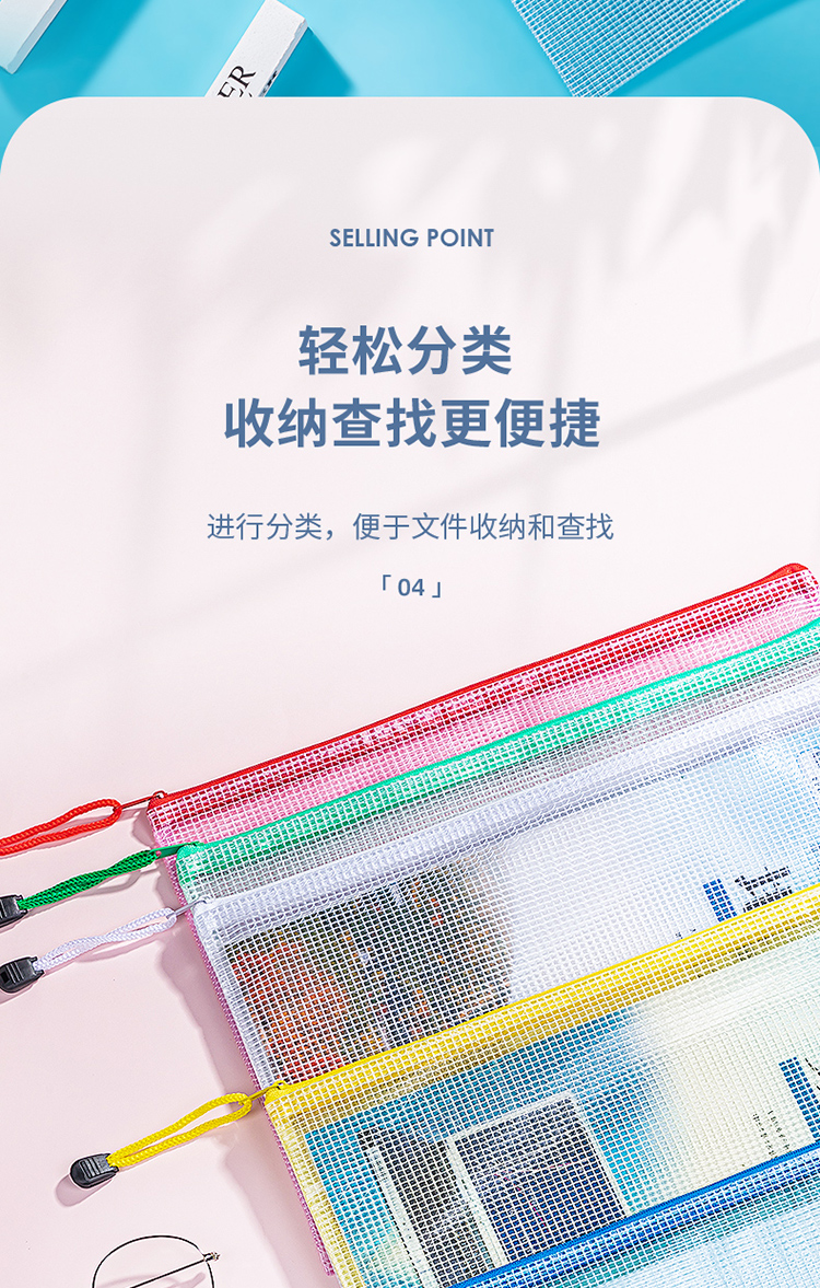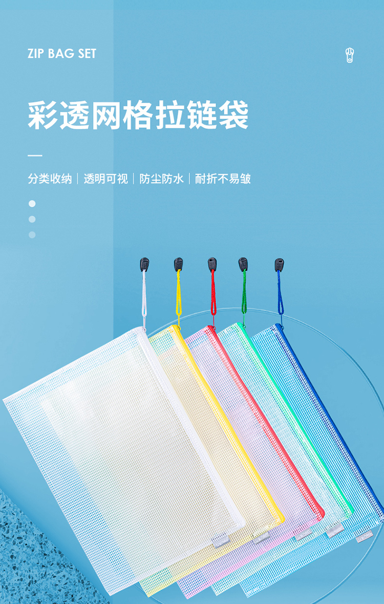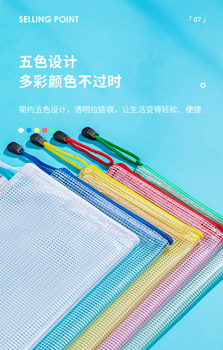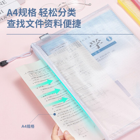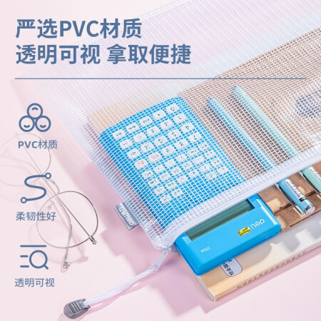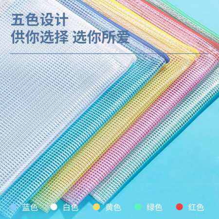 得力 deli 5只A4彩色透明拉链袋 票据试卷收纳 学生资料册 文件保护 33414颜色随机
