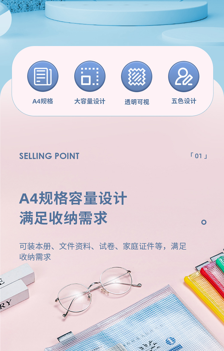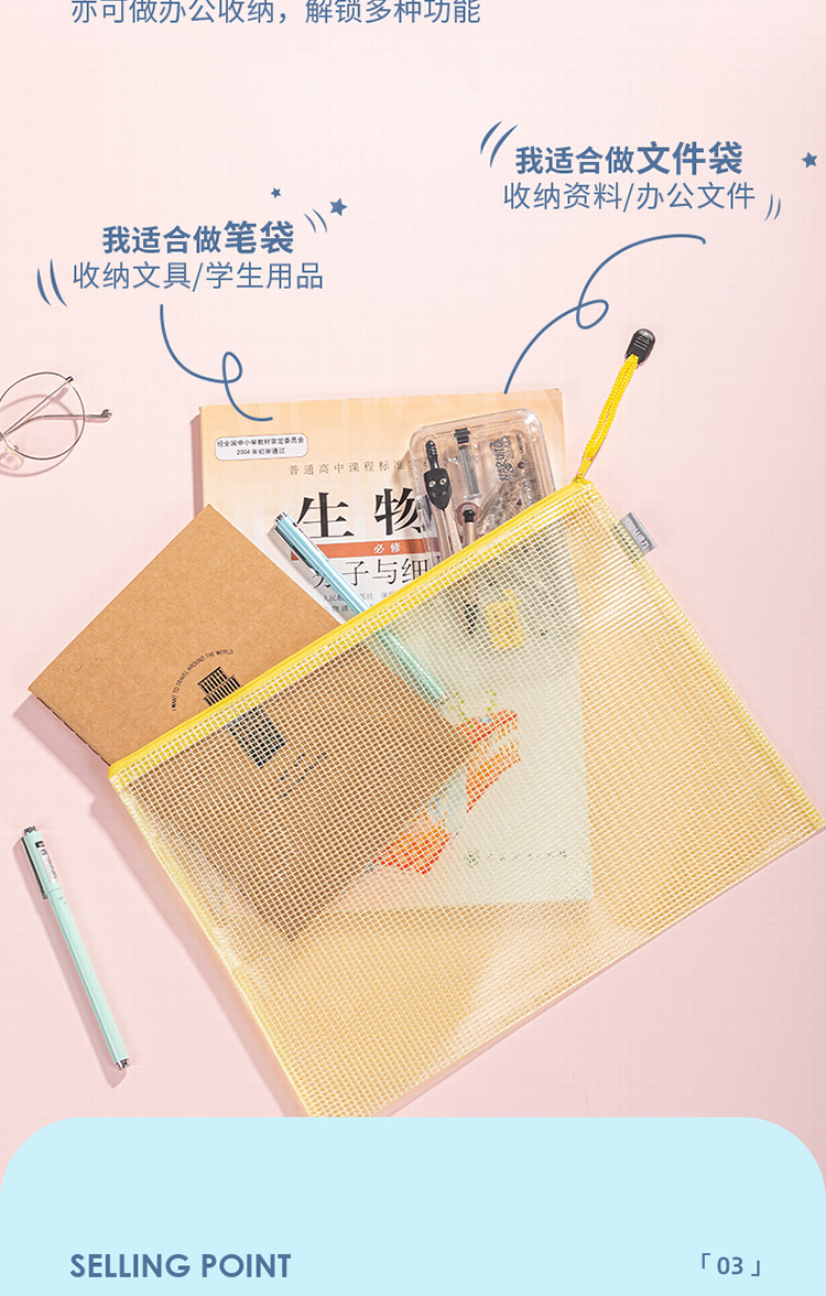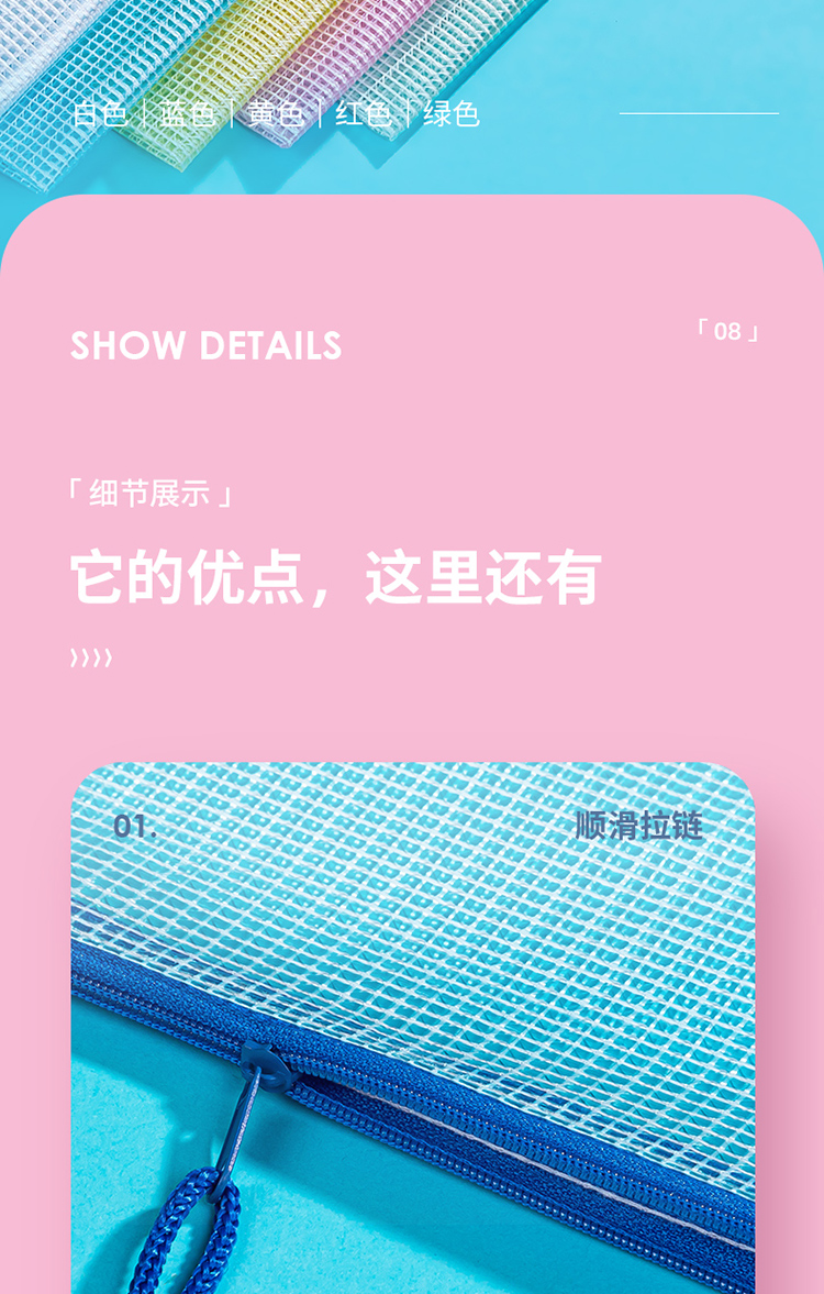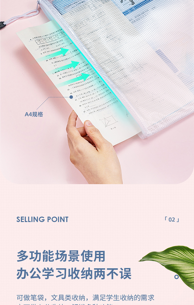 得力 deli 5只A4彩色透明拉链袋 票据试卷收纳 学生资料册 文件保护 33414颜色随机