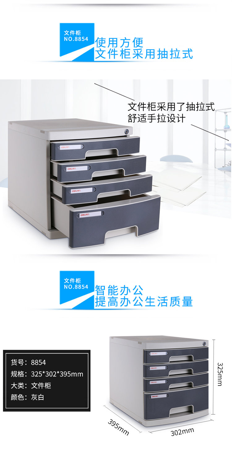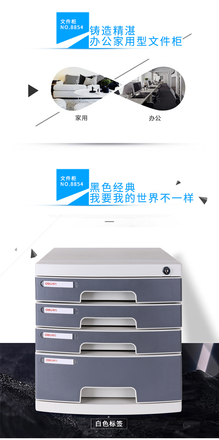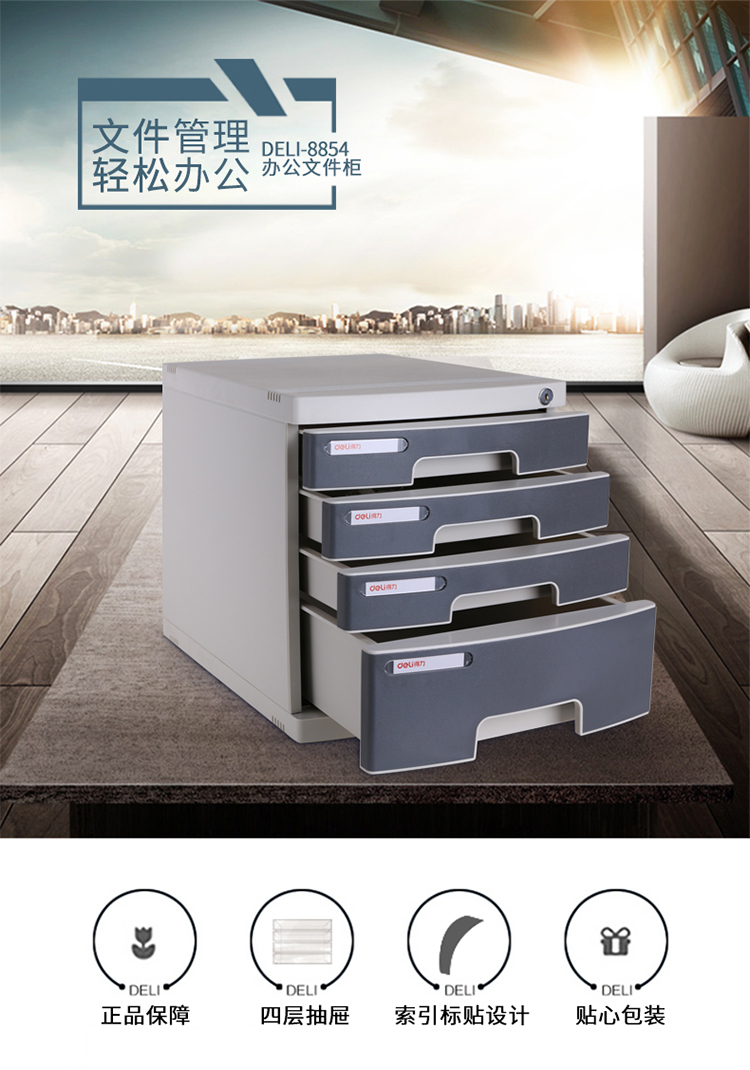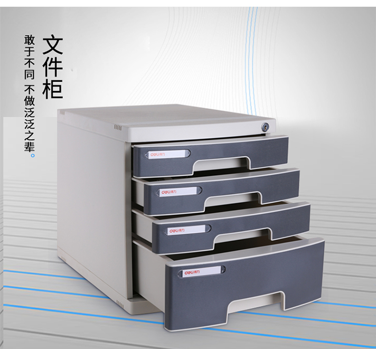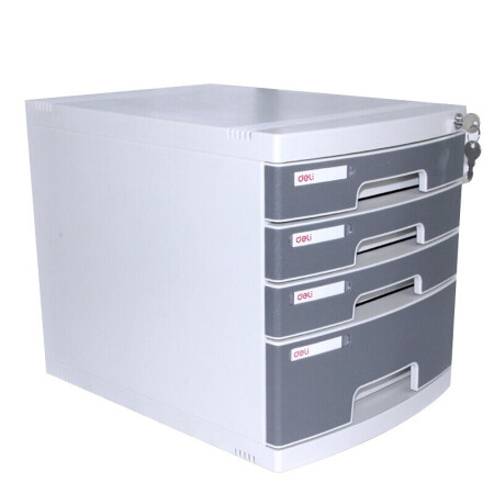 得力 deli dl8854 文件柜 4层带锁手拉桌面面储物柜资料柜 带索引标签抽屉资料收纳柜试卷分类收纳 灰色
