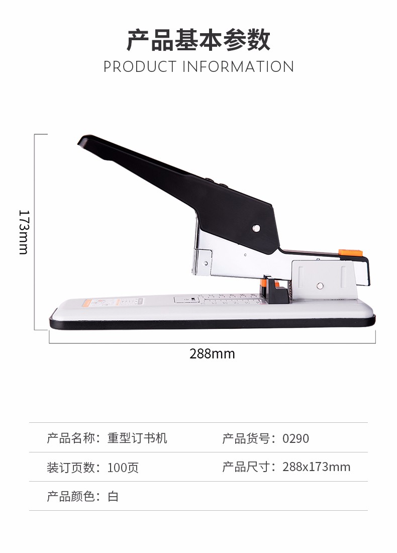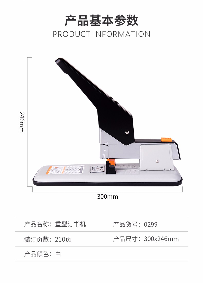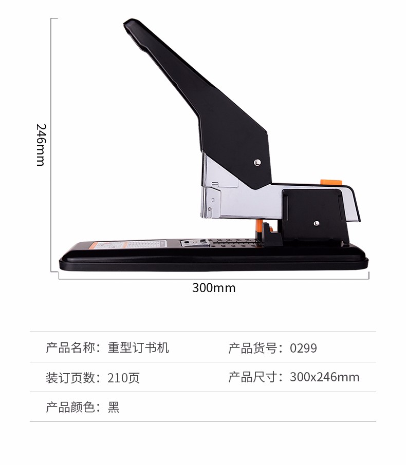 得力(deli)dl0393 装订及打孔类 订书机加厚重型订书器大订书机厚层大型长臂大码重型订书机 可订210页(23/6 -23/25)