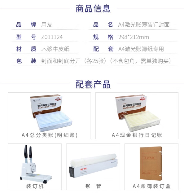 用友/UFIDA Z011124 单据/凭证 会计A4账簿装订封面298*212mm