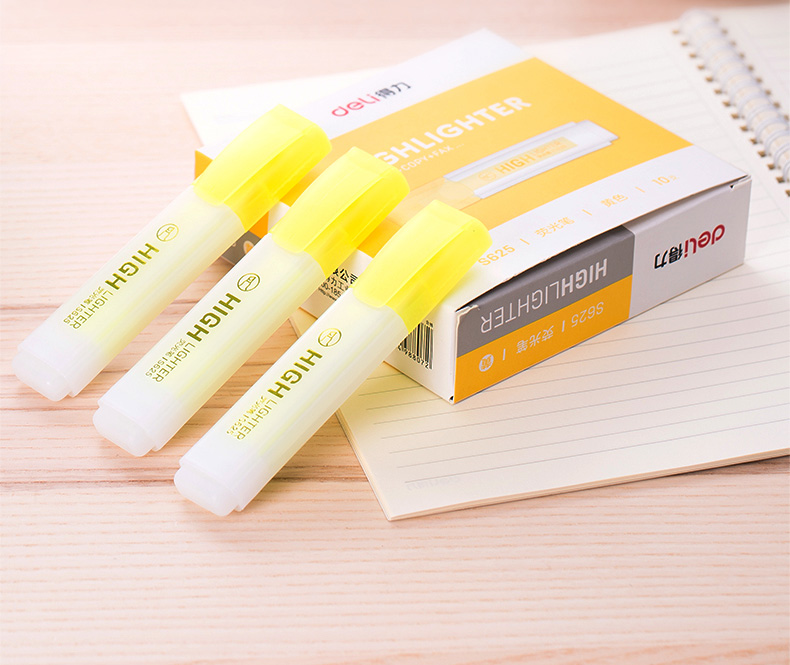 得力(deli)S625 重点标记圈划笔荧光记号笔 斜头标记笔 其它功能笔 黄色【10支/盒】