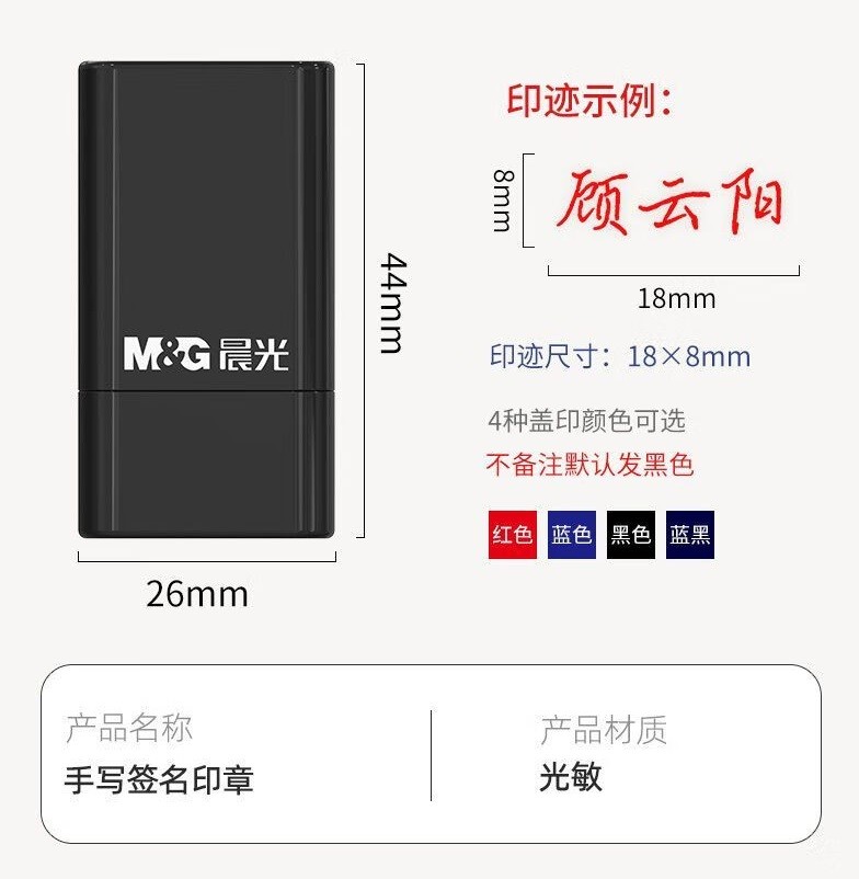 晨光 M&G AYZ001 财务印章 8*18mm 晨光姓名印章自动按压式盖章印 【黑外壳】