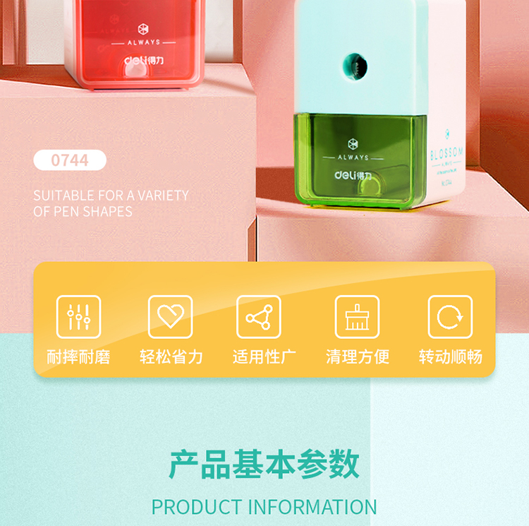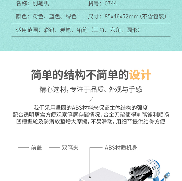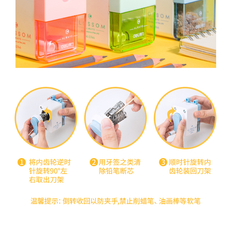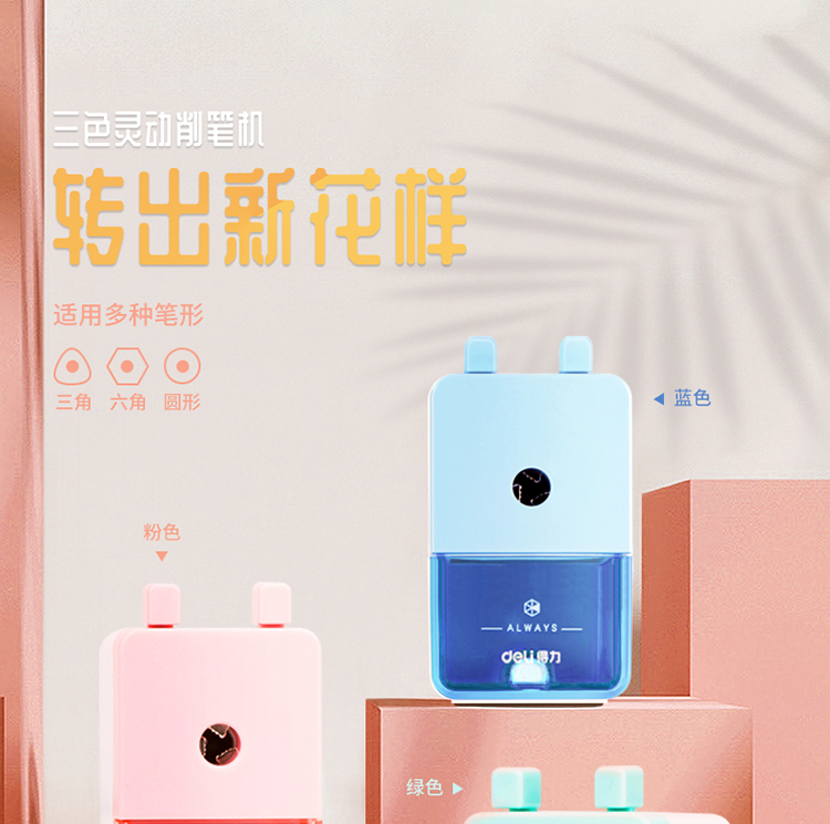 得力 deli 简约式学生削笔机/铅笔削笔器/卷笔刀/转笔刀 蓝色0744