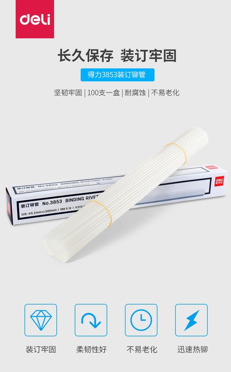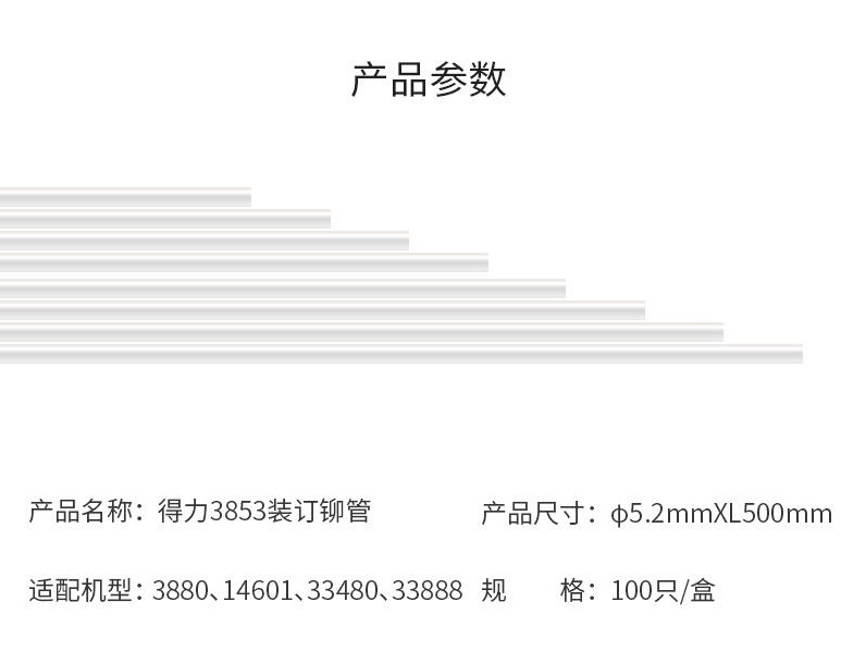 得力/deli 3853 装订及打孔类 财务装订 5.2*500铆管100只3853