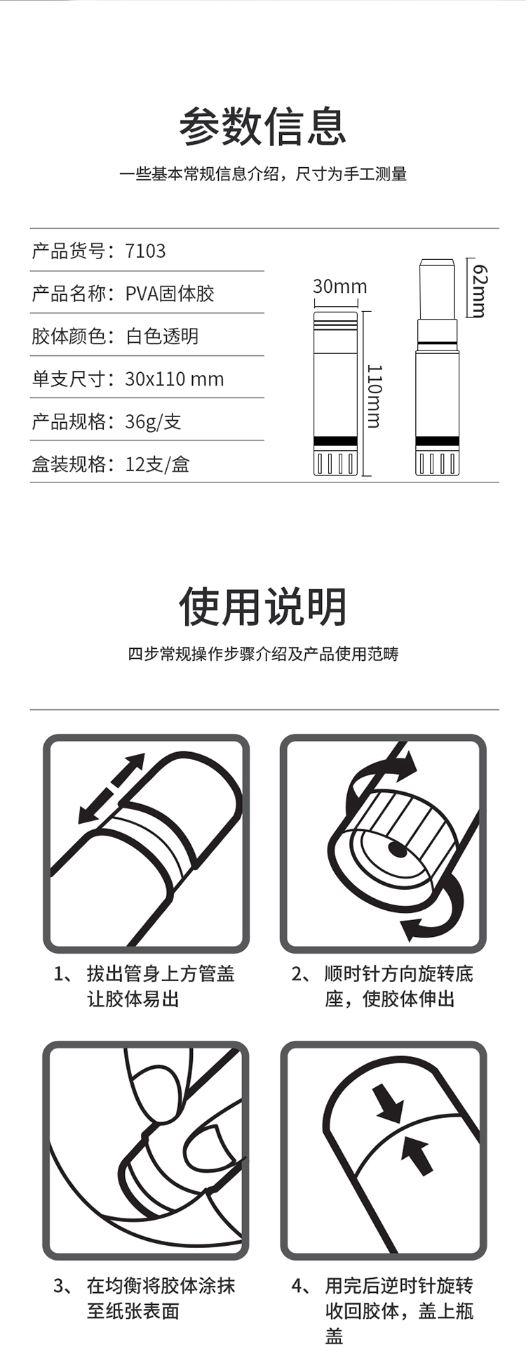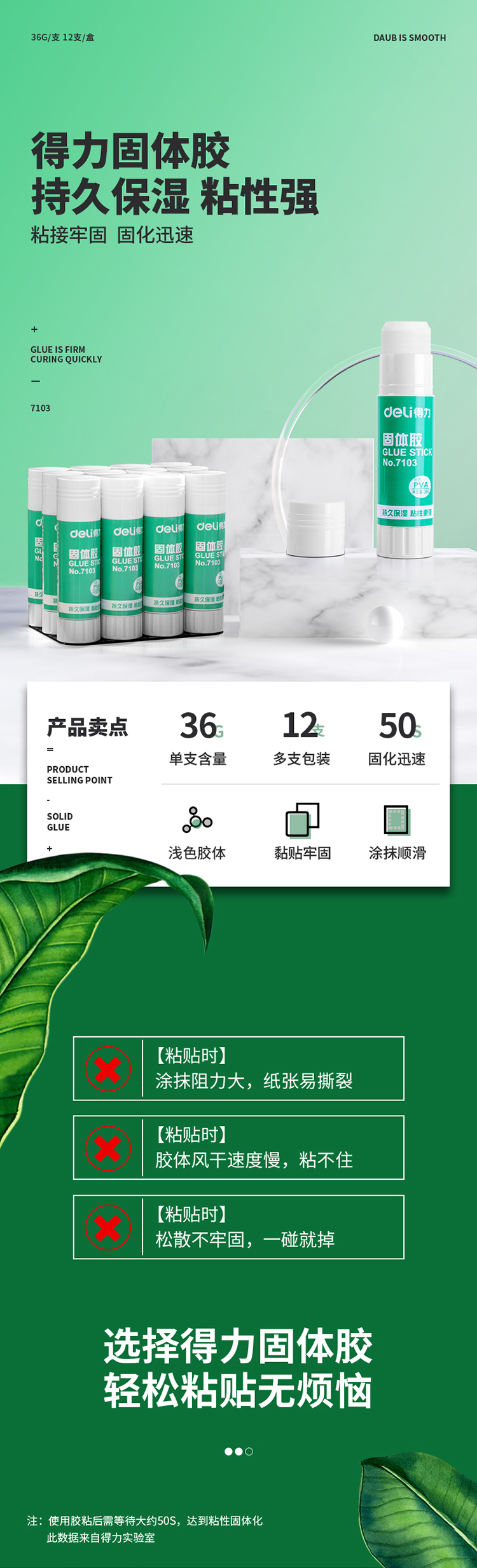 得力 deli DL7103 36g高粘度PVA胶棒/固体胶/胶水12支/盒