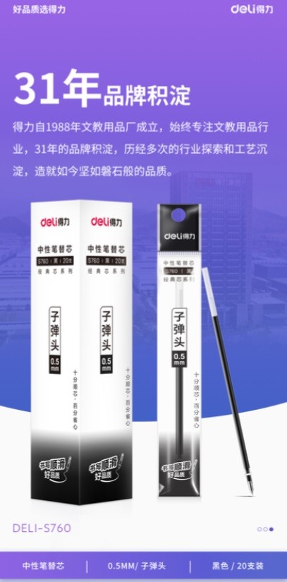 得力 S760 书写用笔类用具 中性笔替芯 20支/盒