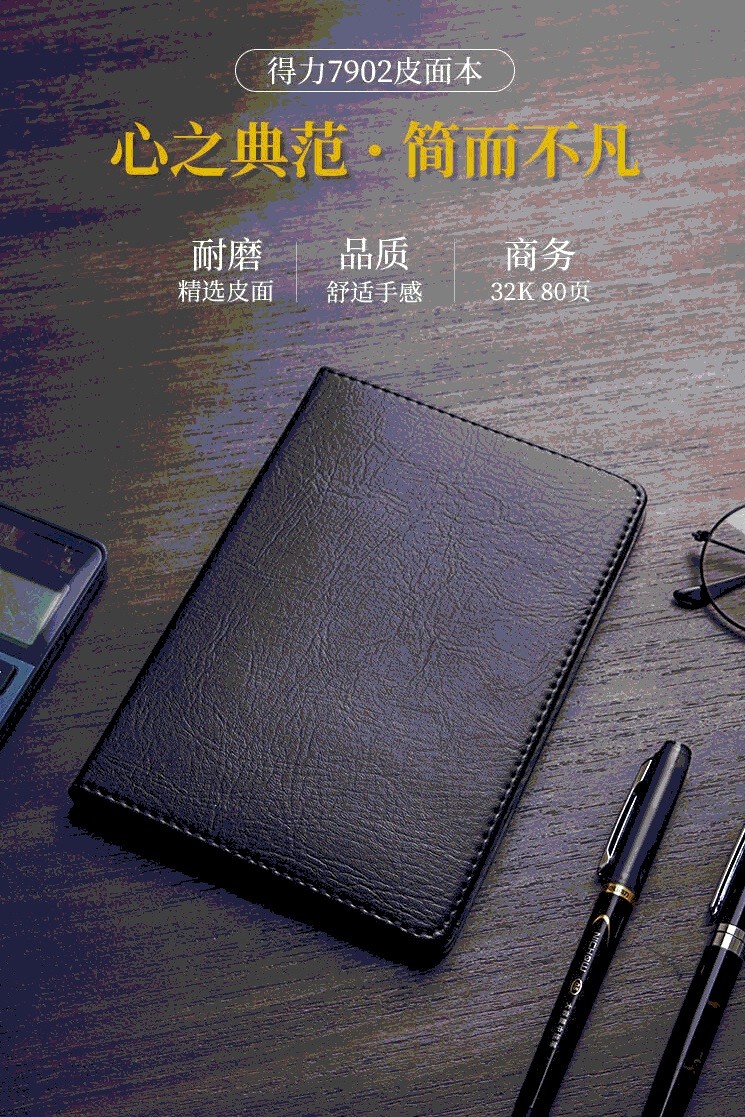 得力/deli DL7902 薄本册 皮面笔记本(黑)-80张-32K(本)