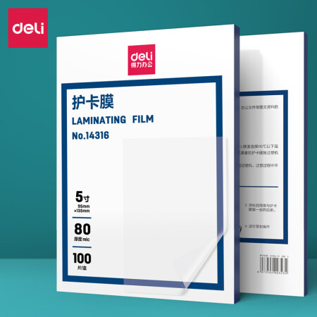得力 deli dl14316 塑封膜 非真空包装机膜 优质护卡膜/塑封膜135*95mm 5寸 80mic厚度100张/包