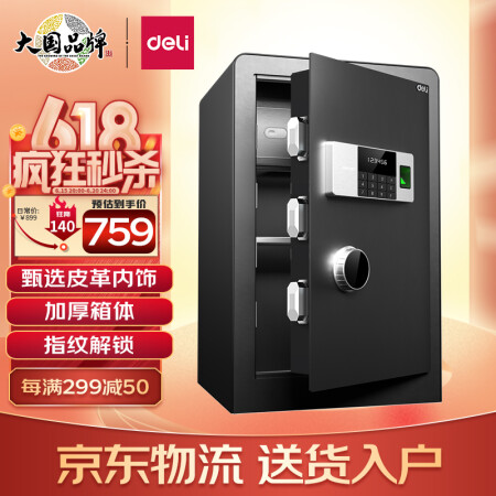 得力 deli DL27116 保险柜 高60cm指纹+密码双重防盗保管箱 办公家用保管柜保密柜 铂雅曜岩黑